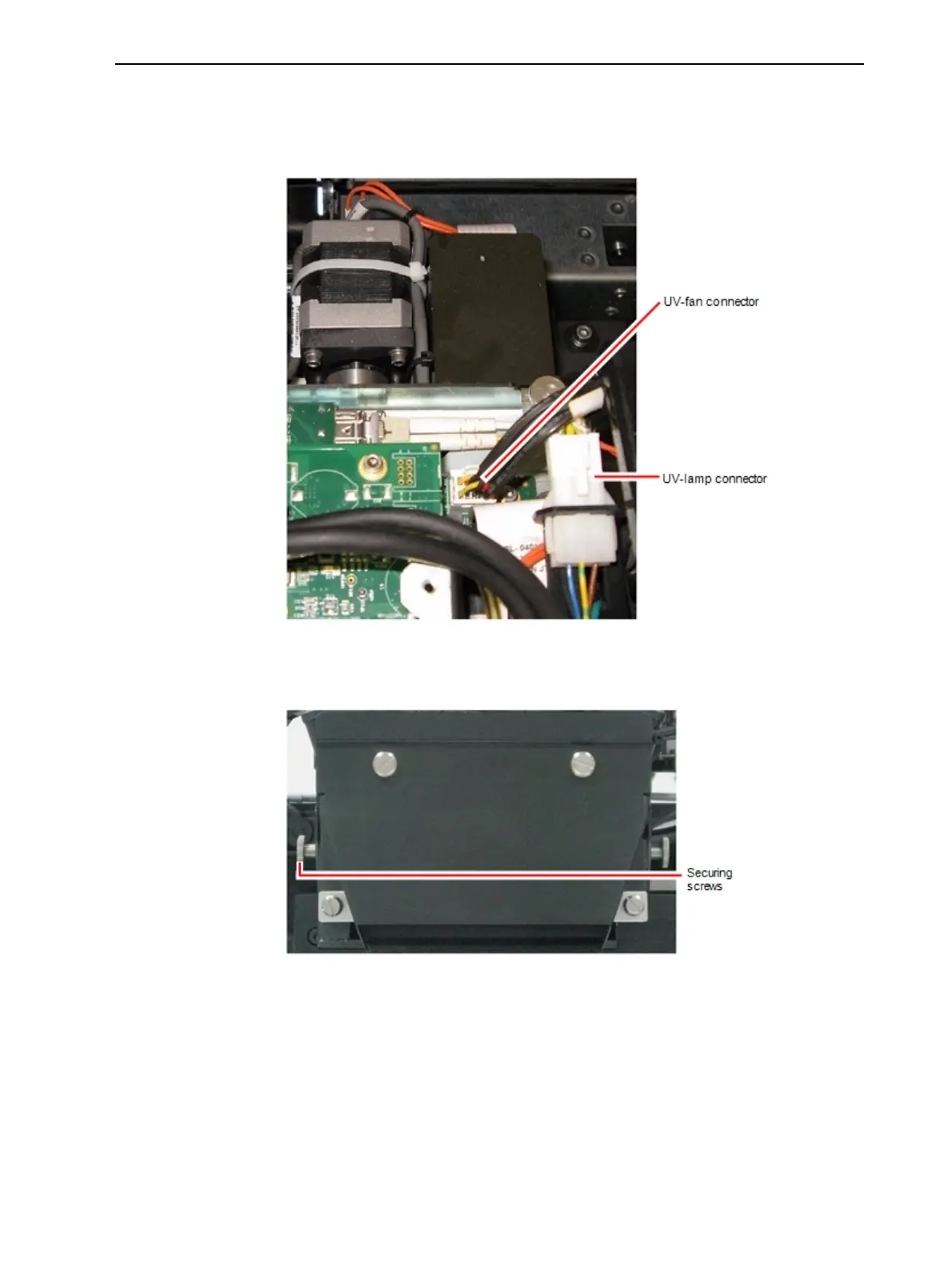 5. Disconnect the UV lamp cable and the fan cable.