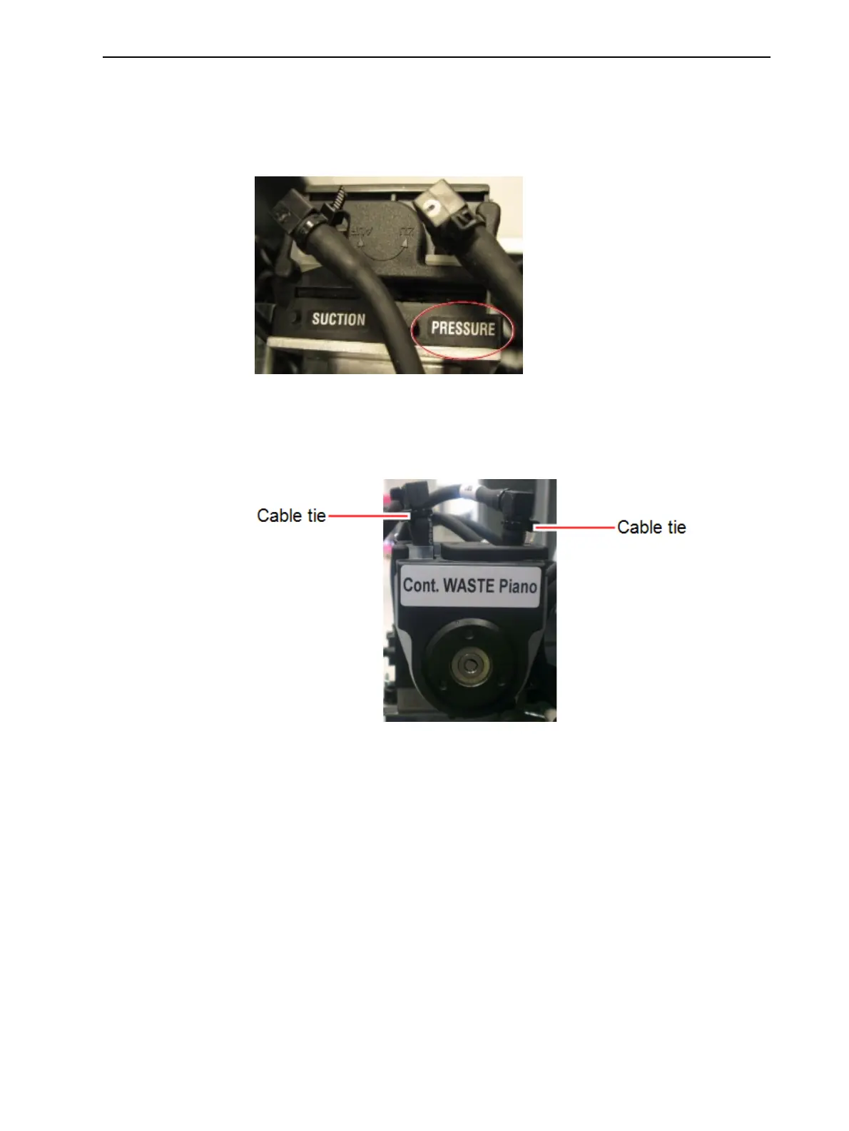 1. On top of the waste pump, locate the tube near the PRESSURE label.