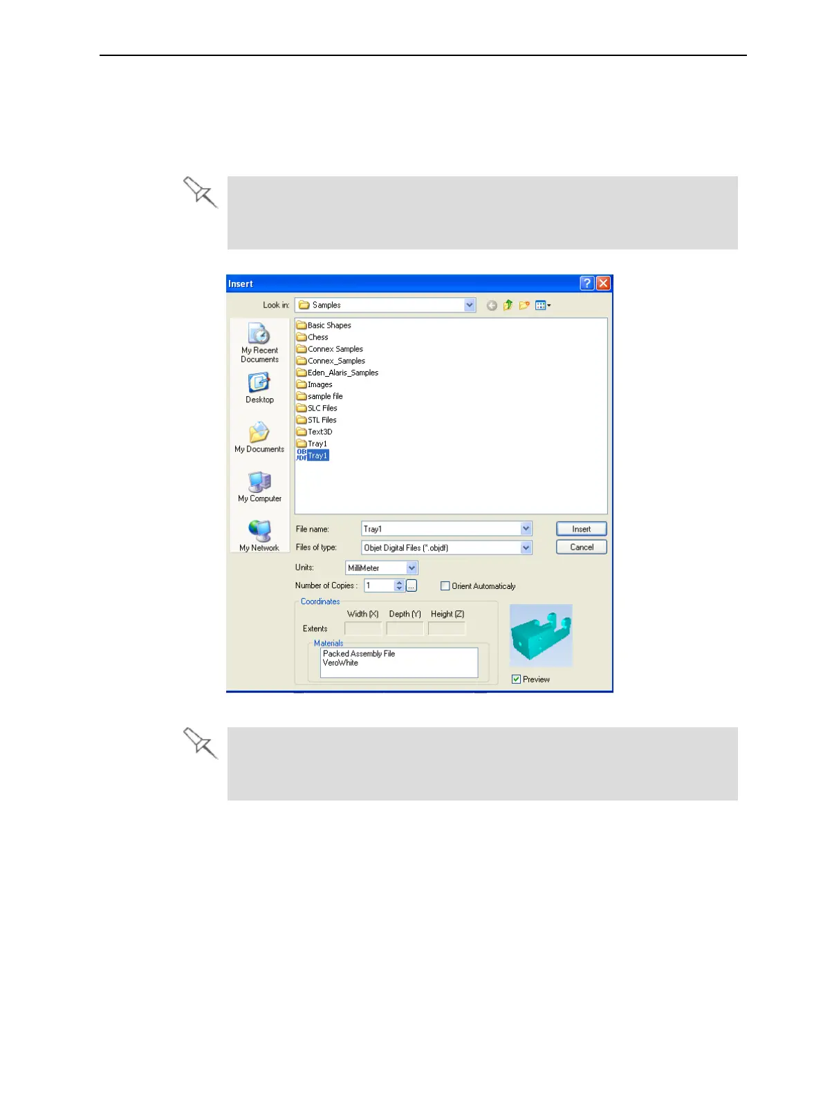 Before placing objdf files on the build tray, Objet Studio must extract the