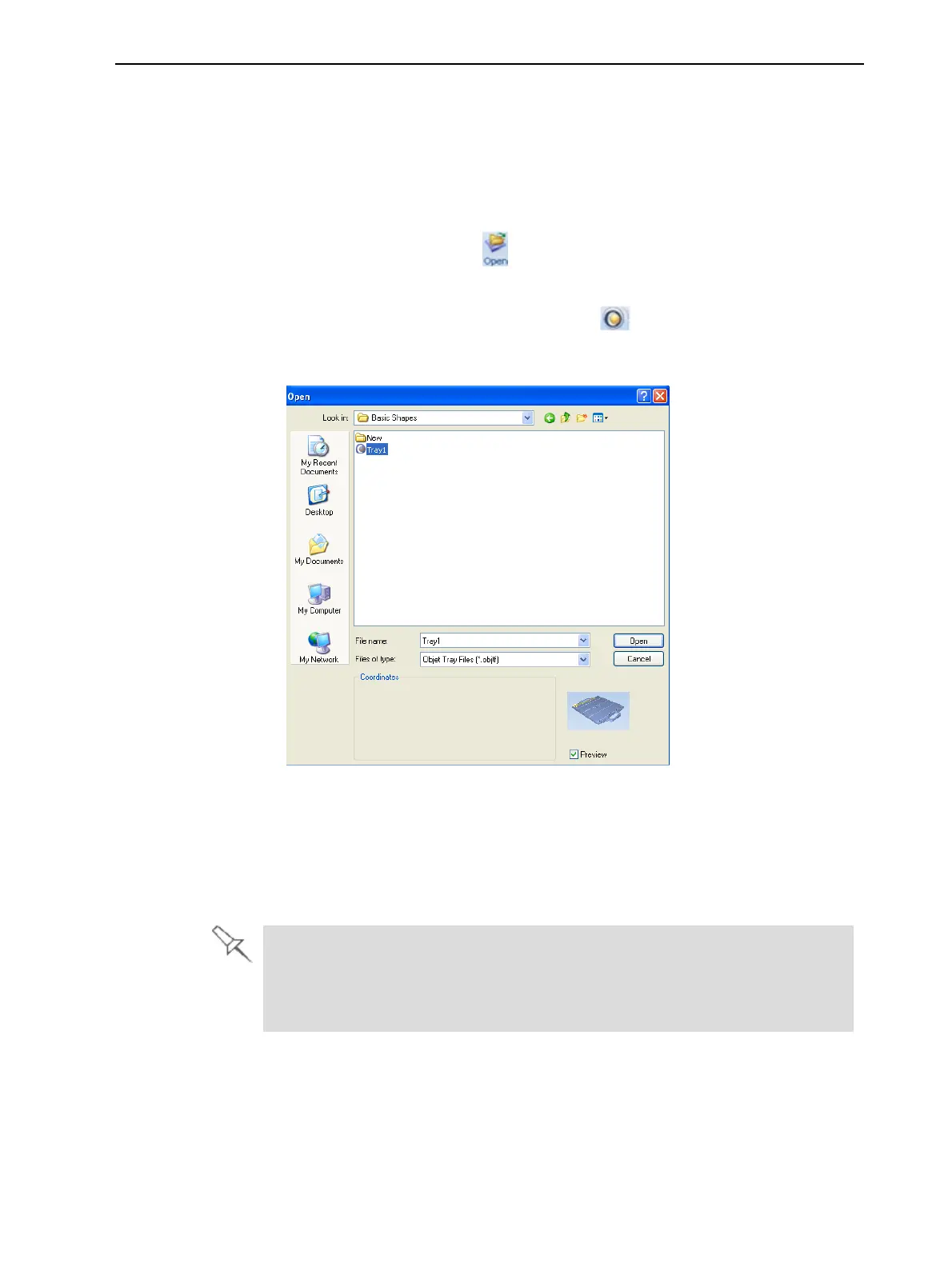 Figure 5-11 Objet Tray File Open dialog box