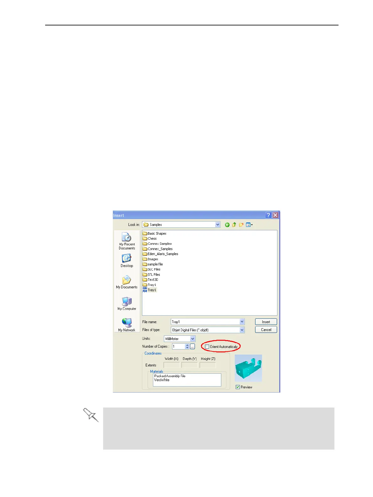 ➢ In the Insert dialog box, make sure Orient Automatically is not selected.