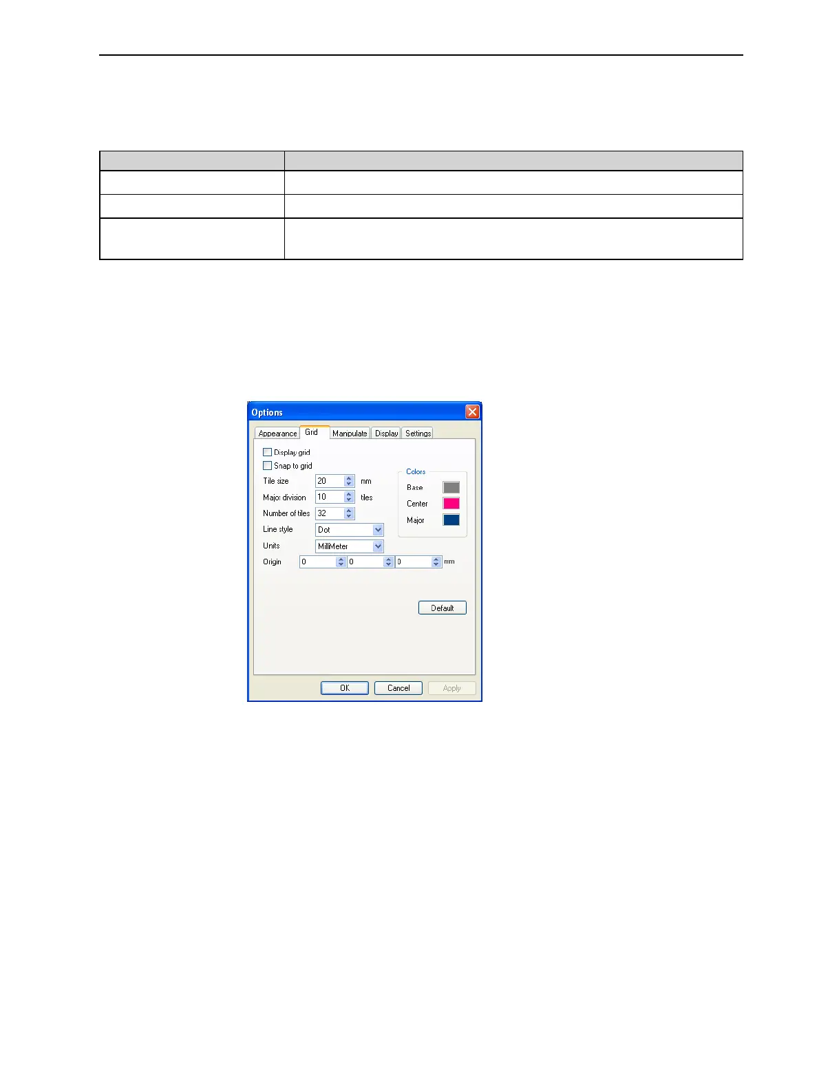 Figure 5-21 Options dialog box, Grid tab