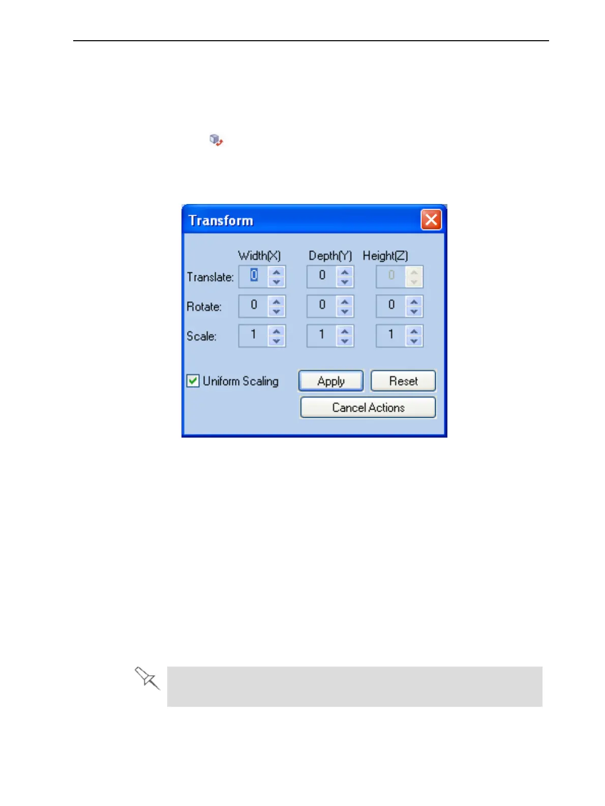 After closing the Transform dialog box, clicking Undo (on the Model Settings