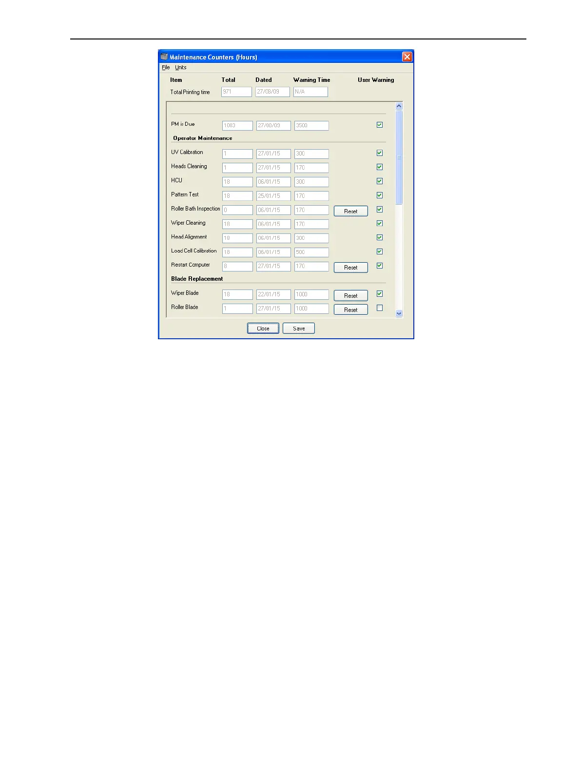 Figure6-22MaintenanceCountersscreen