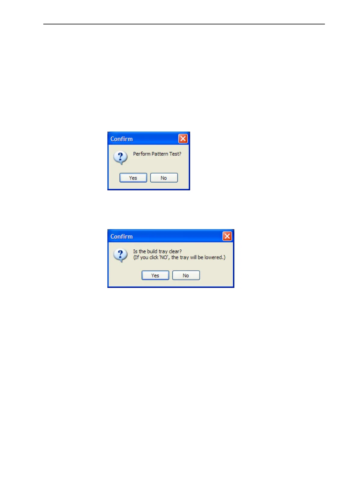 5. Ifthebuildtrayisnotclear,clickNointhefollowingdialogbox.
