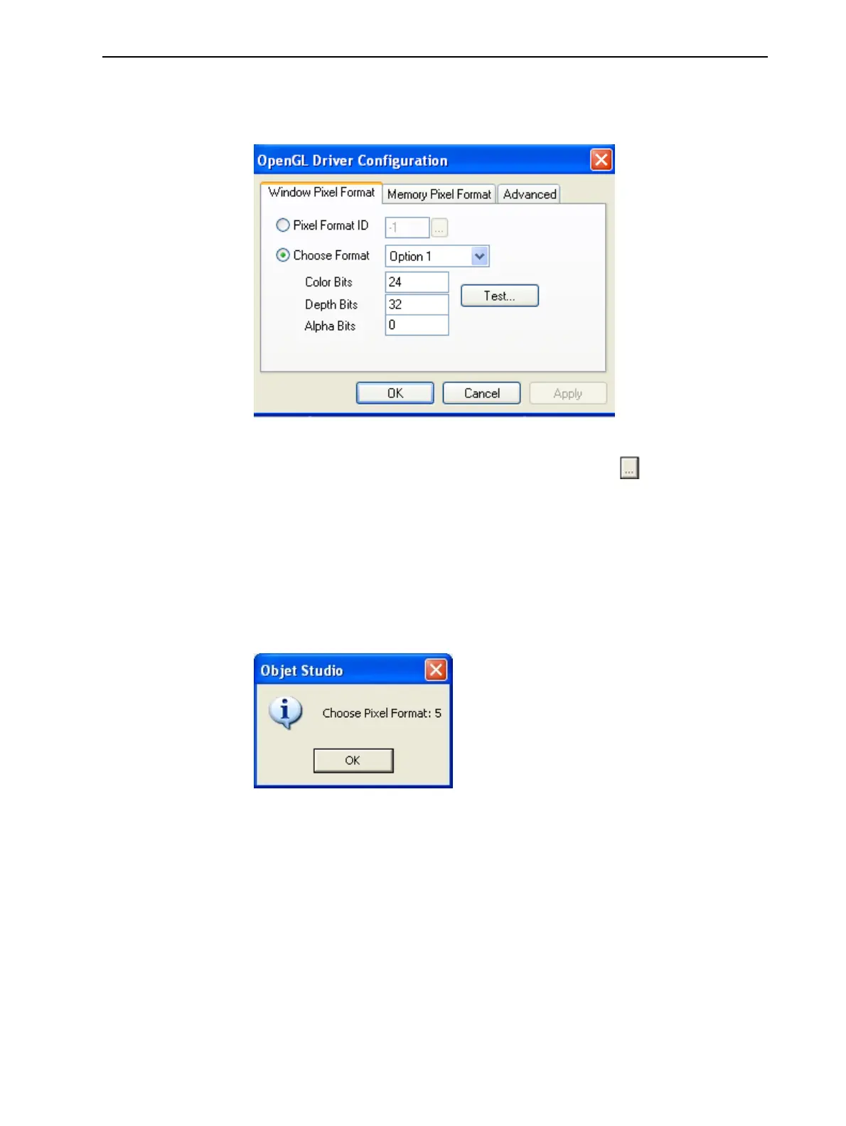 Toperformatestofthedriverconfigurationandenterthesuggestedpixelformat