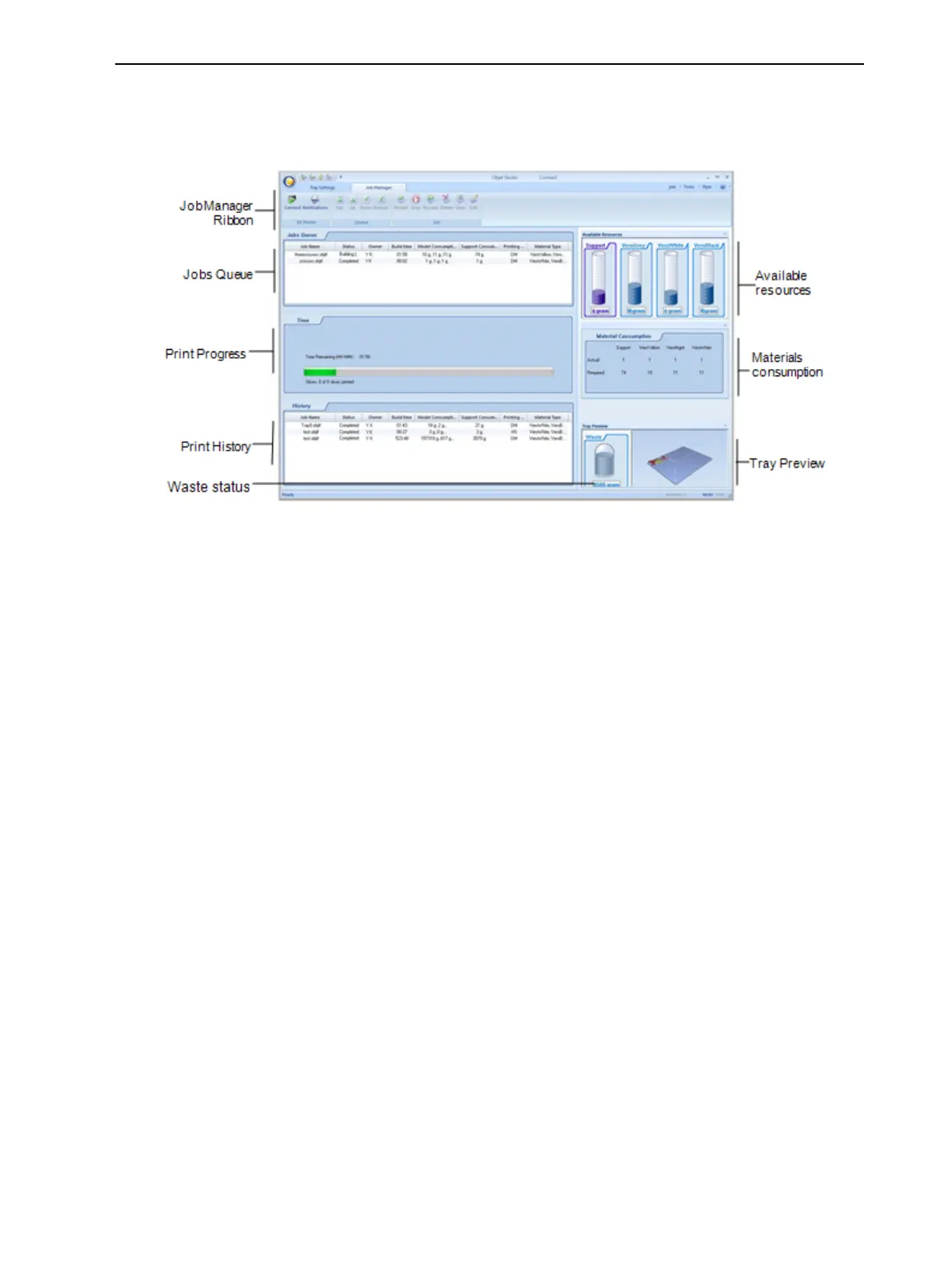 TheJob Managerscreenisdividedintopanels:
