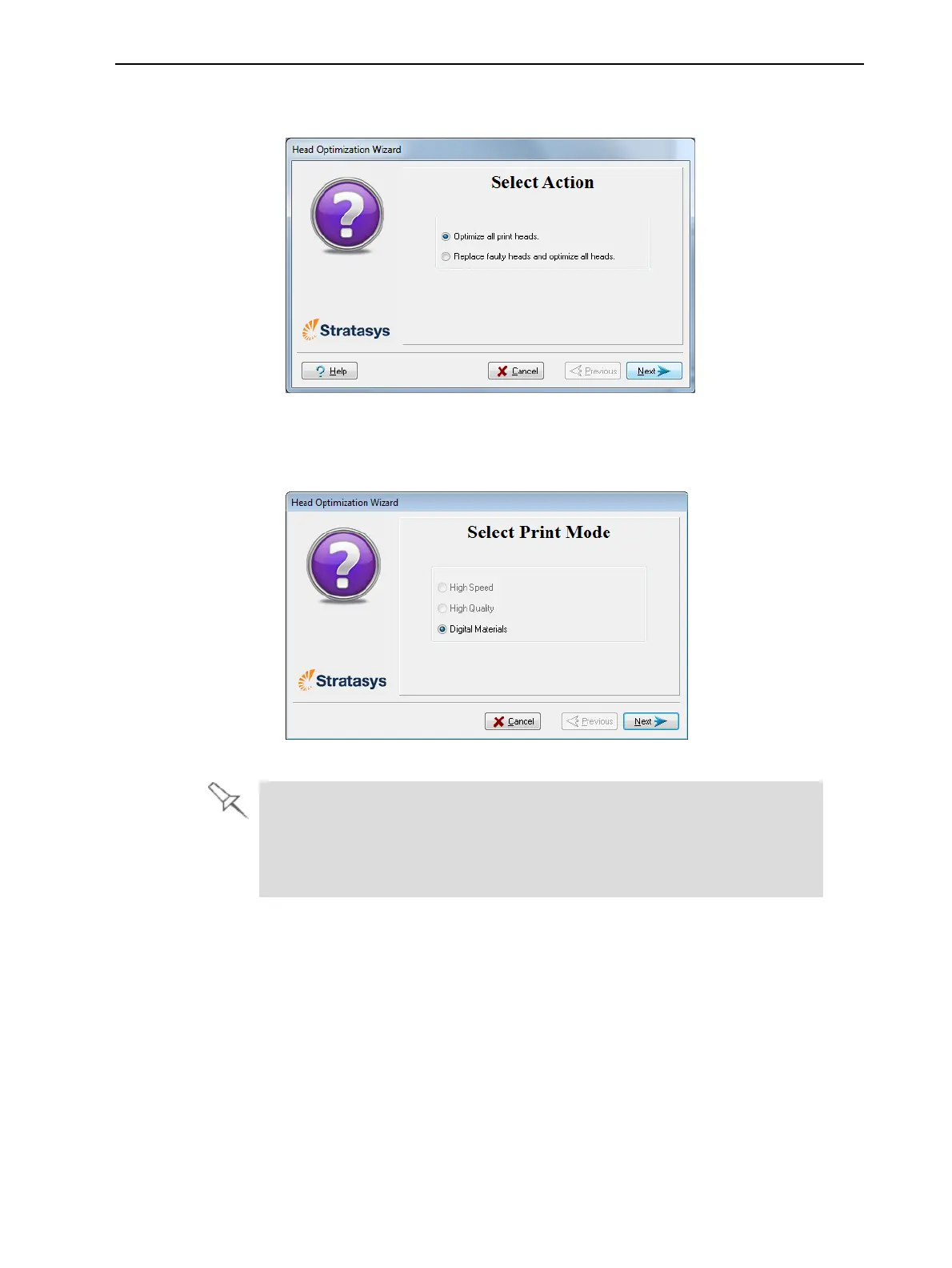 7. Inthefollowingscreen,makesureOptimize all print headsisselected,