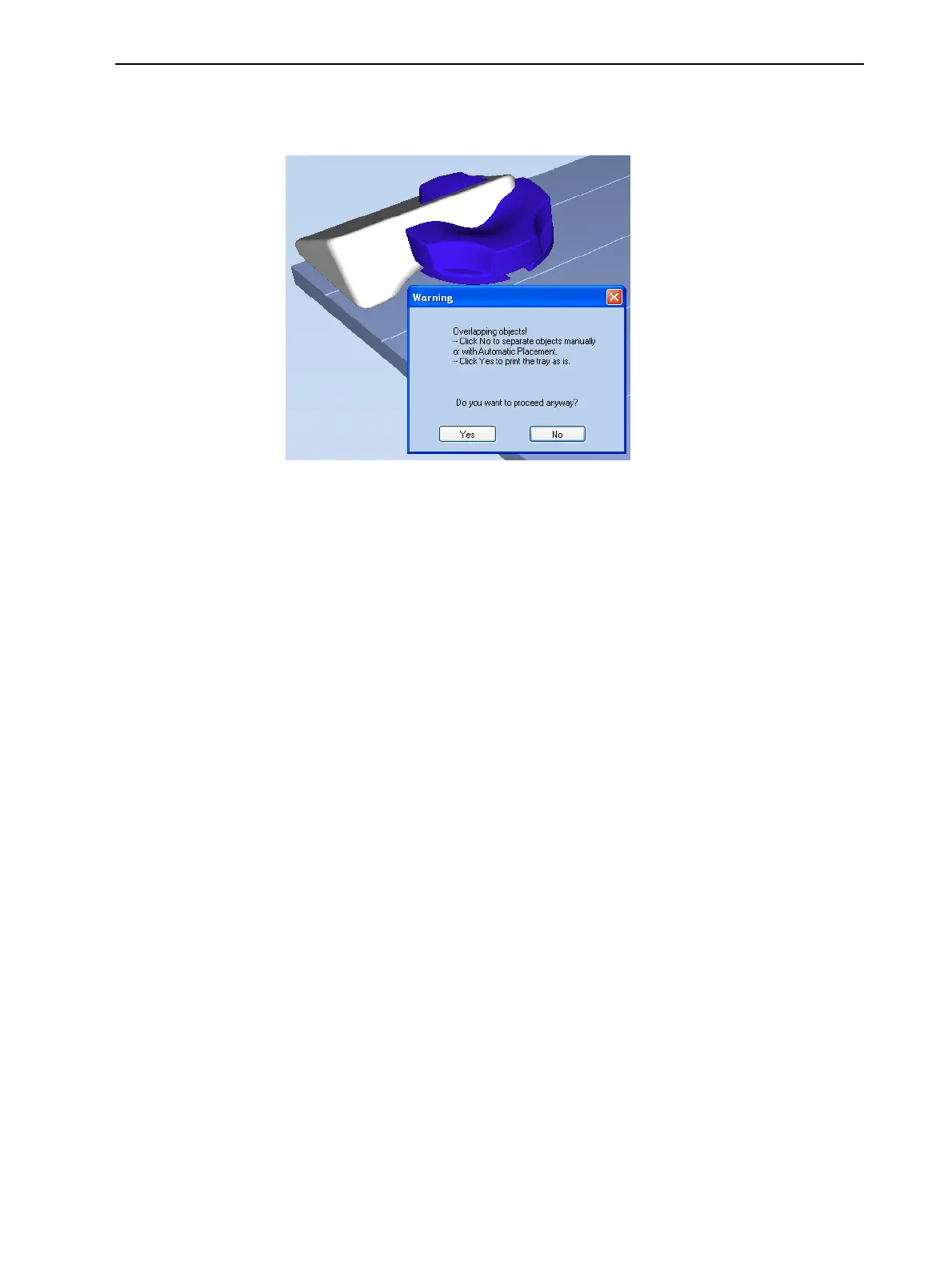 ❒ Toprintthemodelsastheyarepositionedonthetray,clickYes.