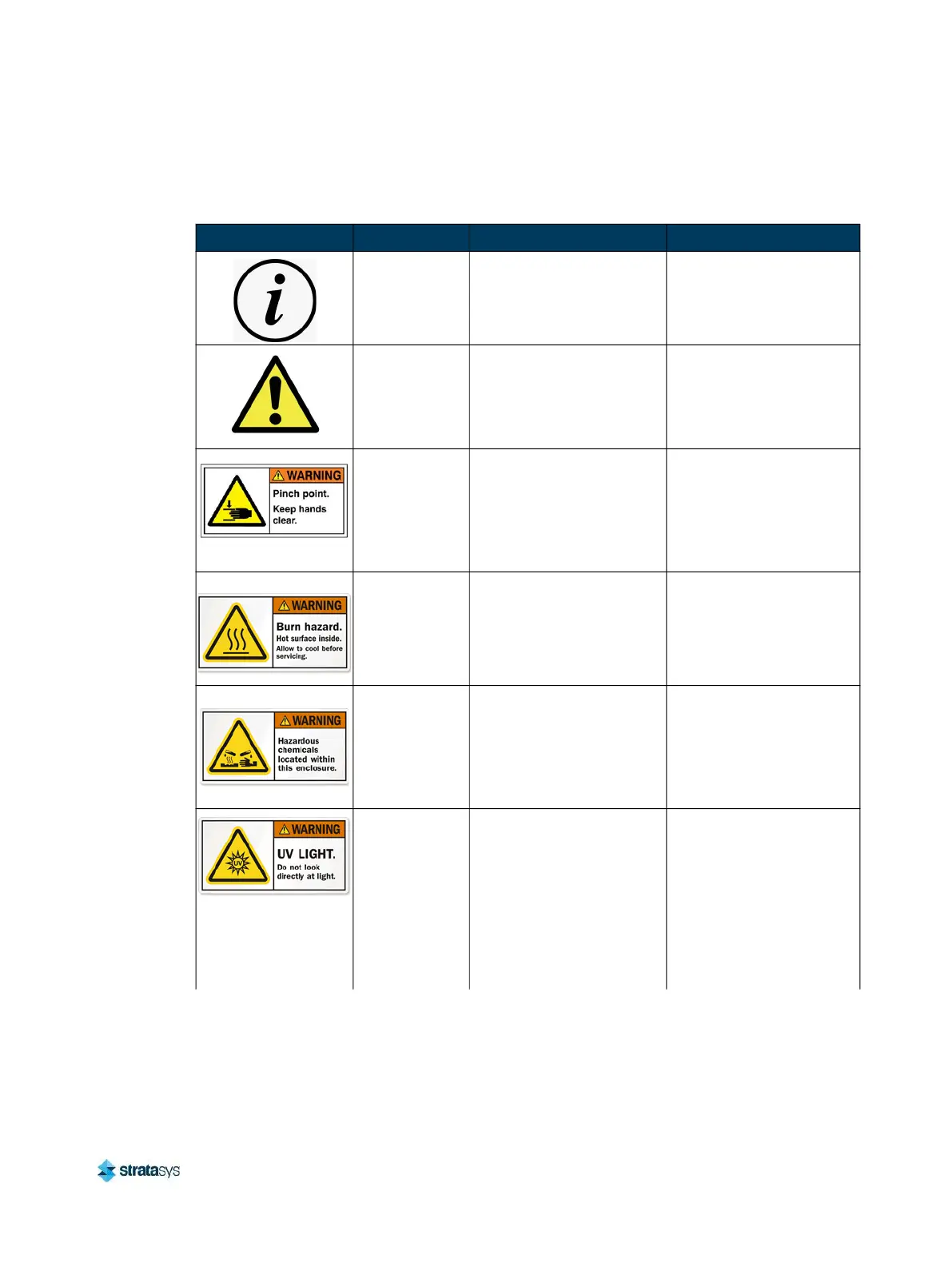 Warning Symbols Meaning Location Comments