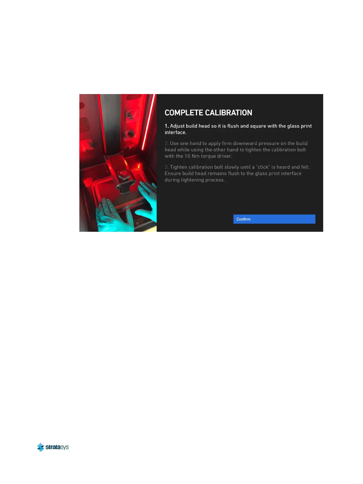 7. Once the build head reaches the calibration position, adjust the build head so that it’s flush