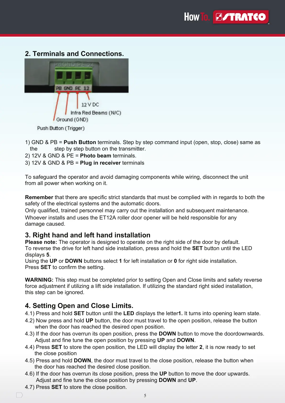 Whoever installs and uses the ET12A roller door opener will be held responsible for any