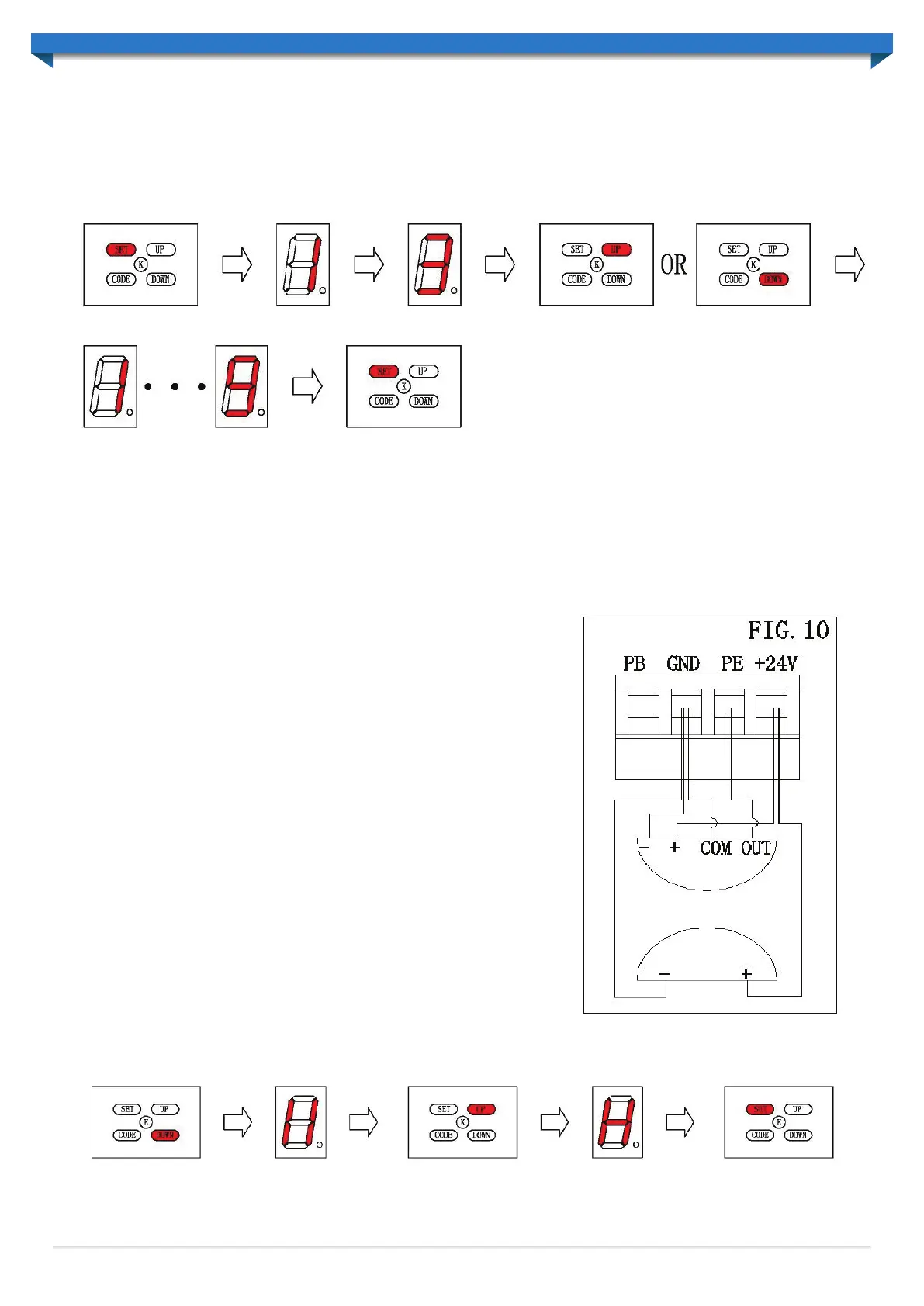 4.4.1 Press ‘SET’ button and hold on until the LED displays figure ’3’. Press ‘UP’ button to increase the force,