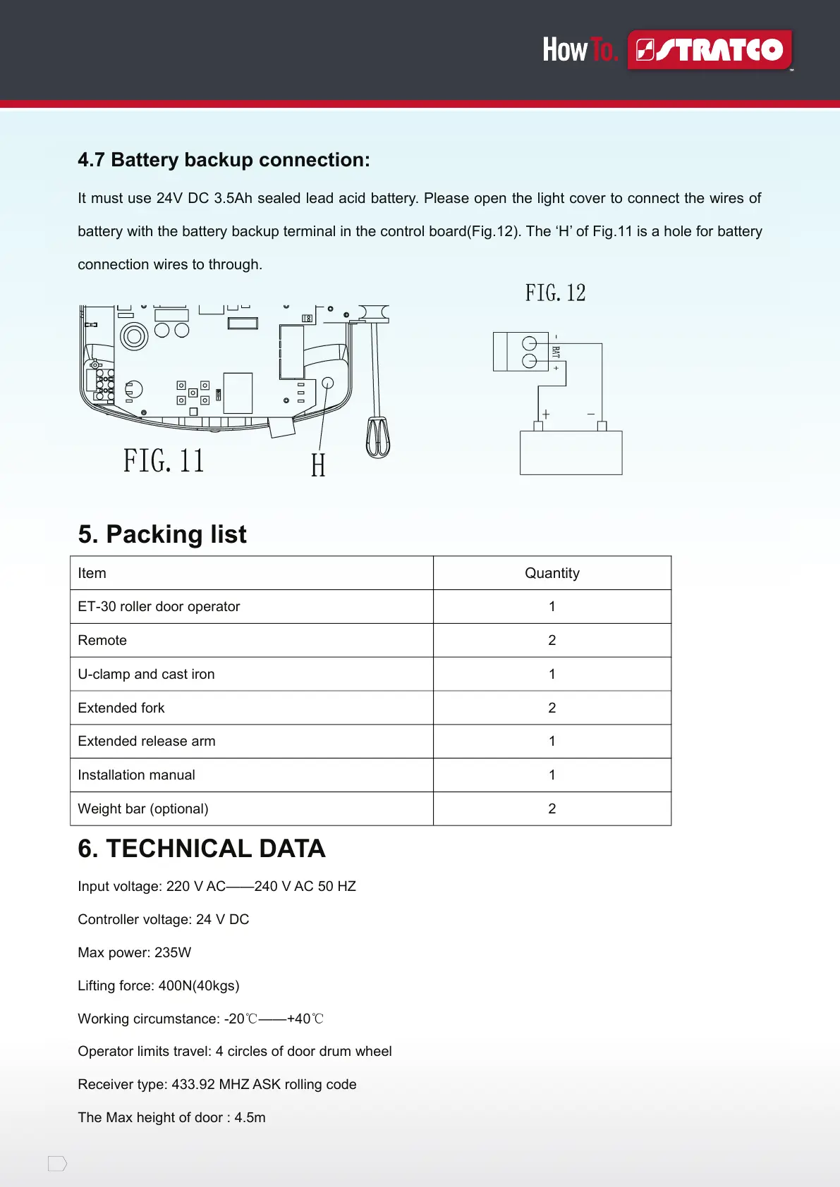 4.7 Battery backup connection: