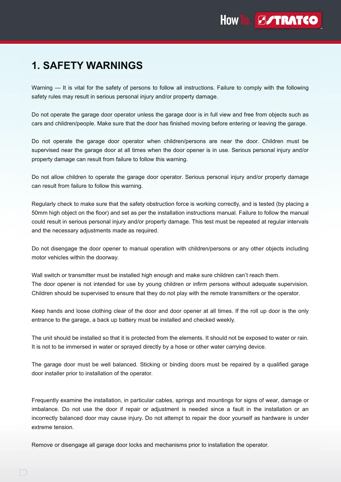 cars and children/people. Make sure that the door has finished moving before entering or leaving the garage.