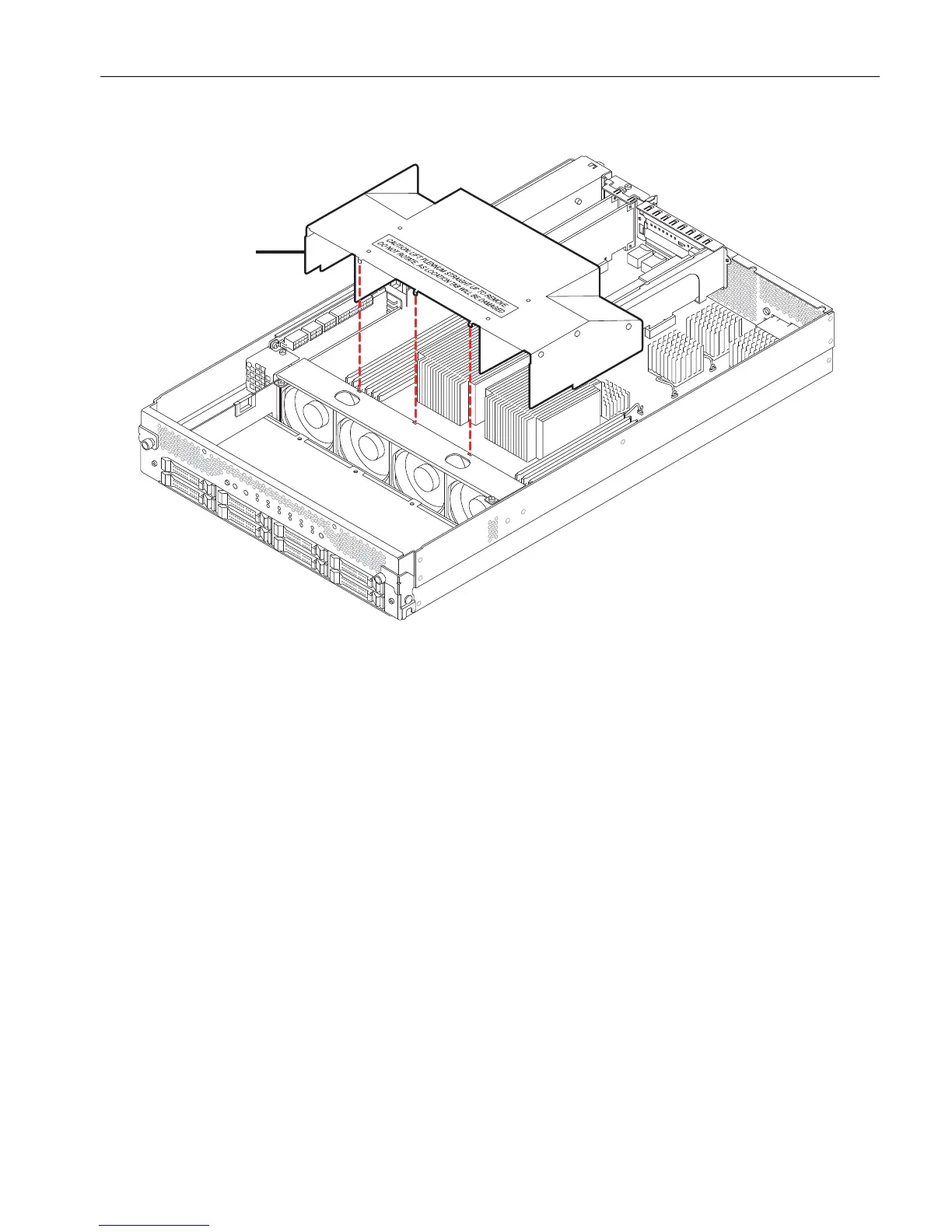To seat the plenum properly, slide its sides over the outside of the DIMM slots, and