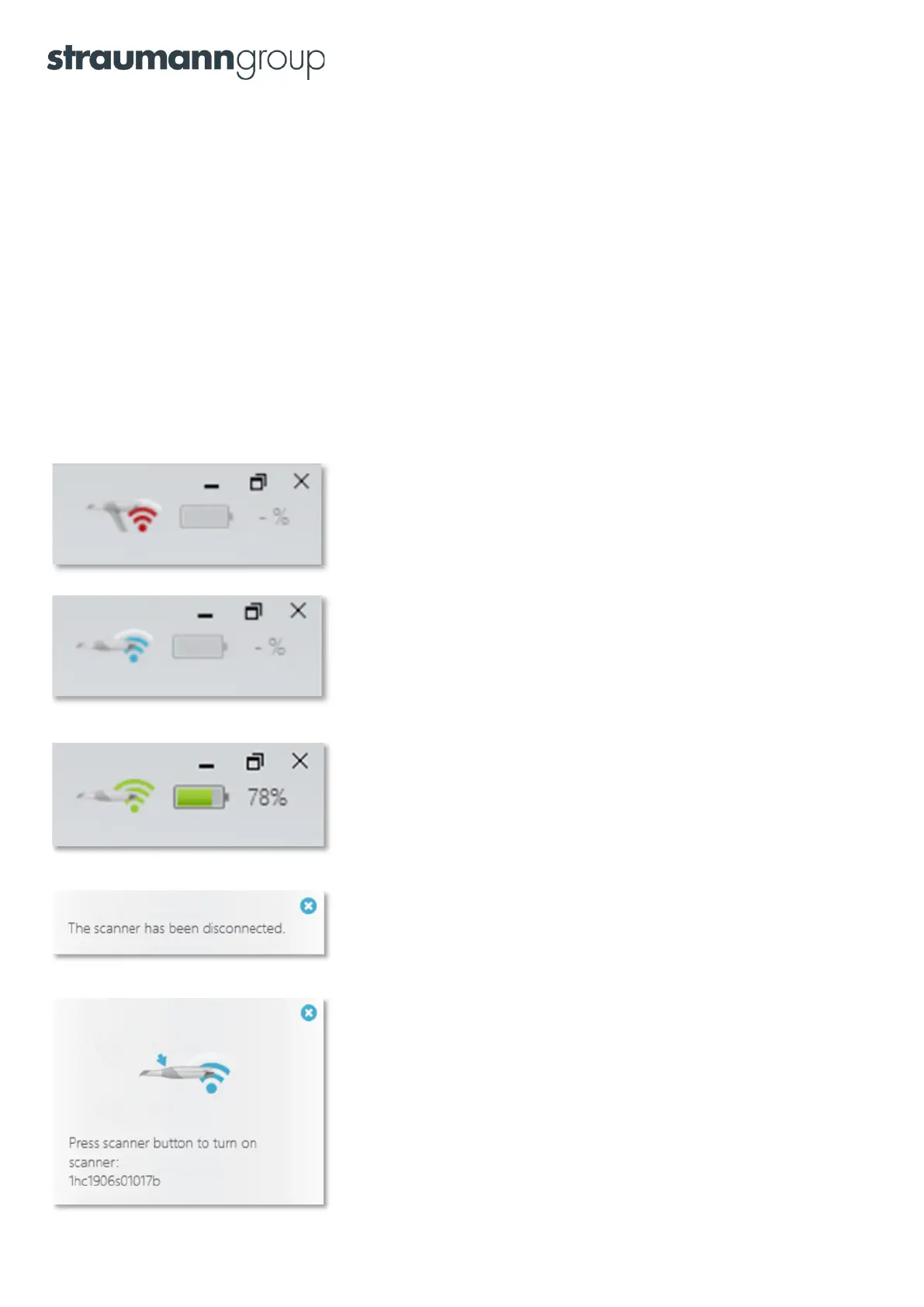 Press the scanner’s button to turn it on and connect.