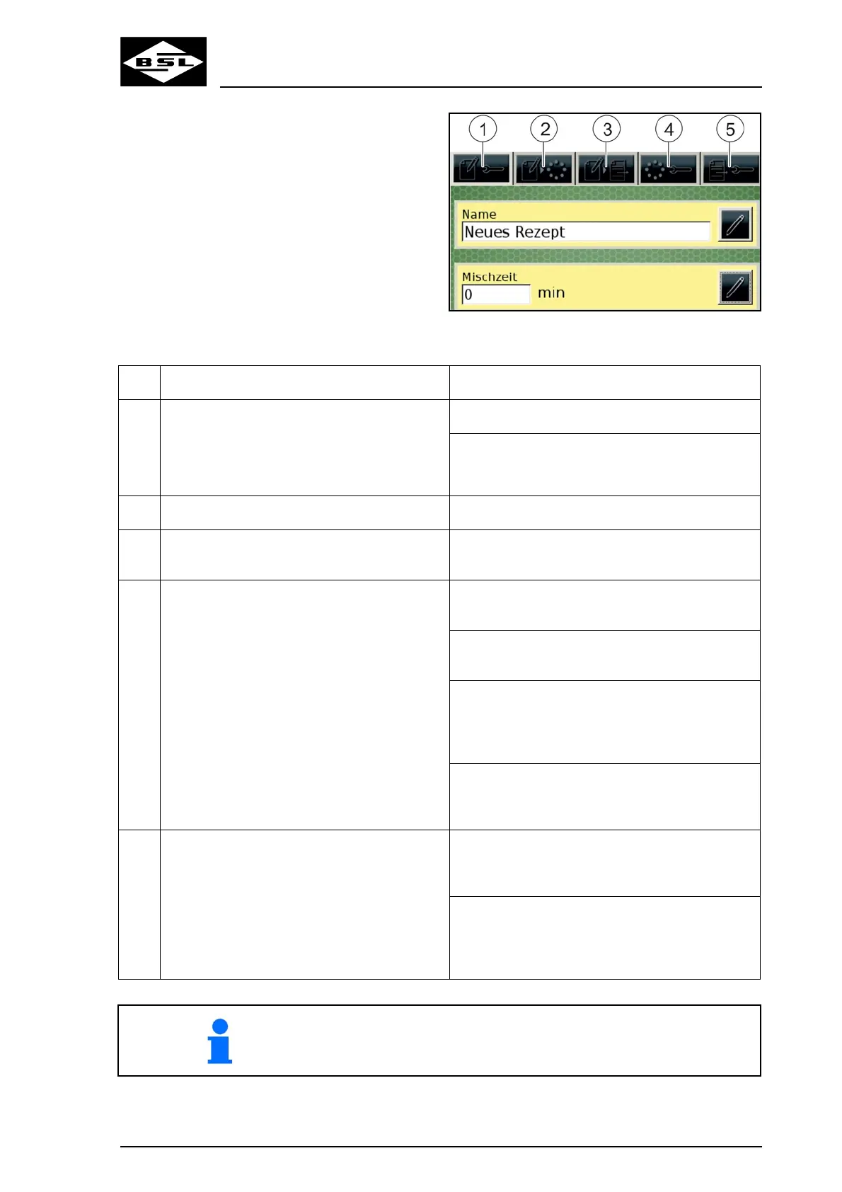 5 Discharging parameters Recipe position; defines at which position the