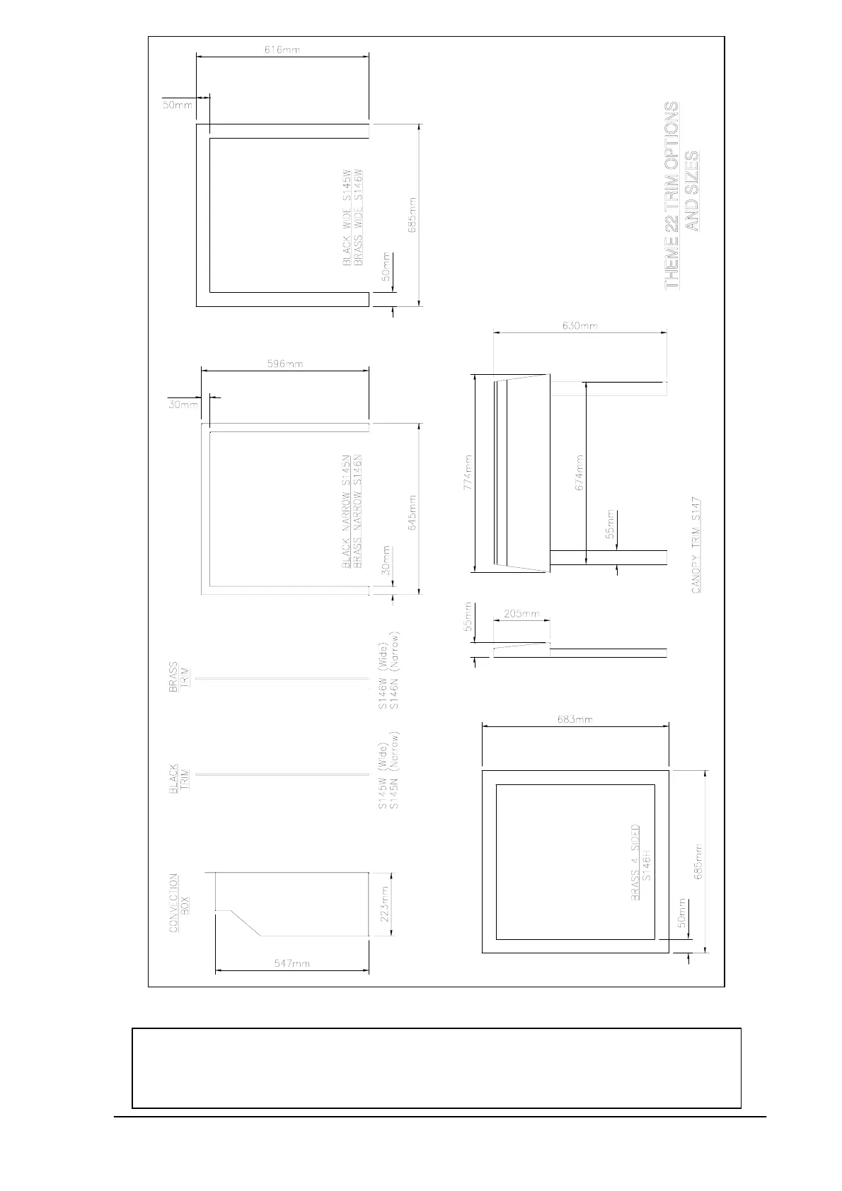 STRAXGAS Theme 22 - Trim Options and Dimensions; Theme 22 Trim Variations; Convection Box and Trim Dimensions; Manufacturer Liability Disclaimer