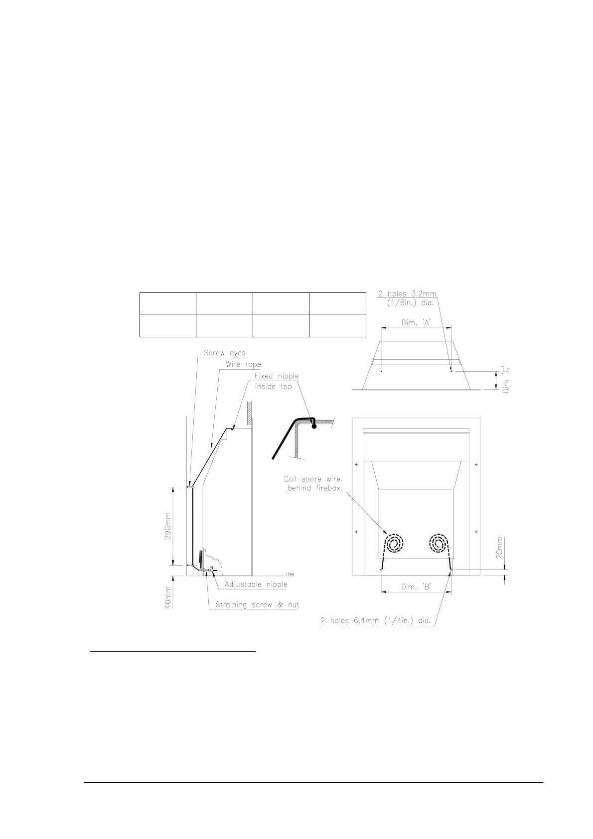 Fire type Dim. ‘A’ Dim. ‘B’ Dim. ‘C’