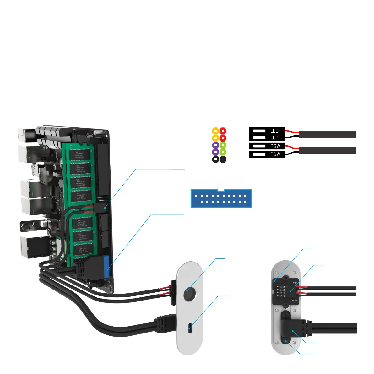 the Switch / LED PCB and the USB Cable can be rotated 180 degrees on the front I/O to route the cables in the opposite direction if there if you have a