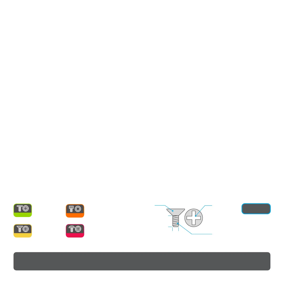 Several different screws will be utilized in the assembly so the user guide indicates which screws should be used and their corresponding fixing location. Screws are