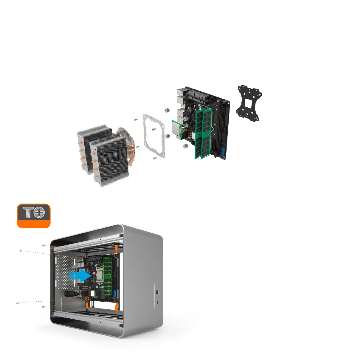 If using an AIO water cooler, we recommended installing it after all the other hardware has been fitted to the case. The tubing and radiator will make working with