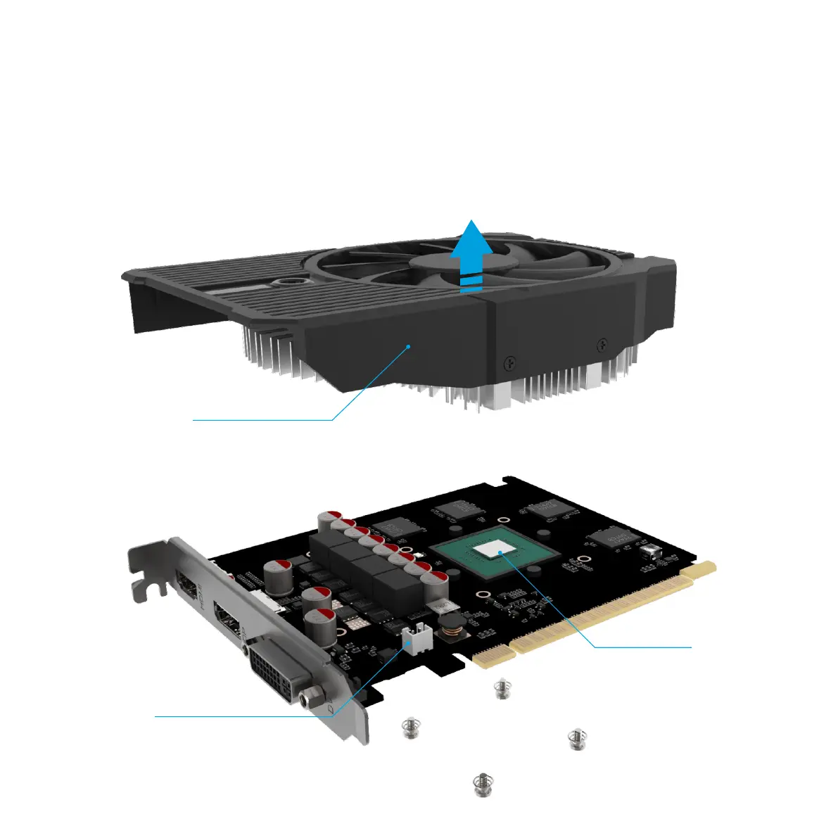 then carefully pry it away from the card. The fan connector should also be disconnected in order to fully remove the stock cooler assembly.
