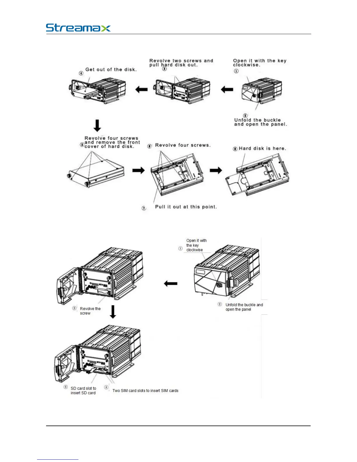 Streamax A5-E0804 - Installation Instructions; Hard Disk Installation; SIM Card Installation