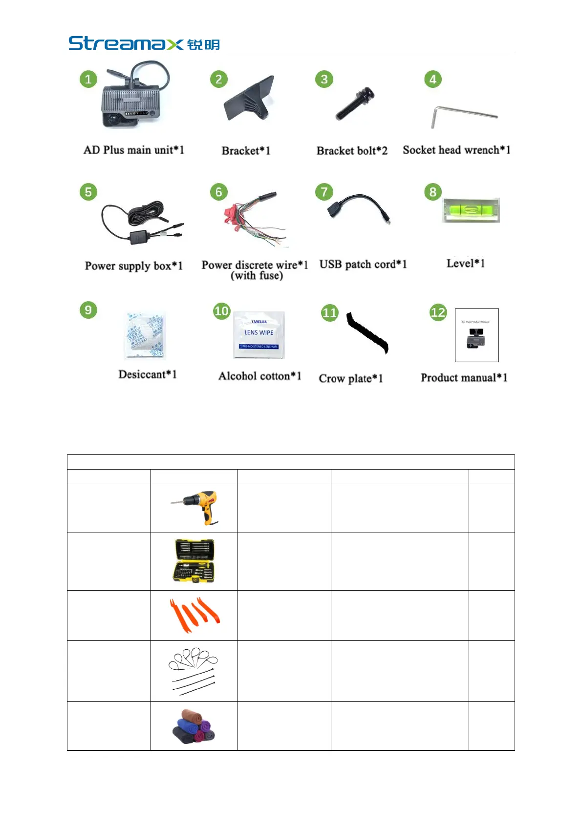 Streamax AD Plus - Installation Tools and Accessories; Installation Tools Preparation; Installation Tools List