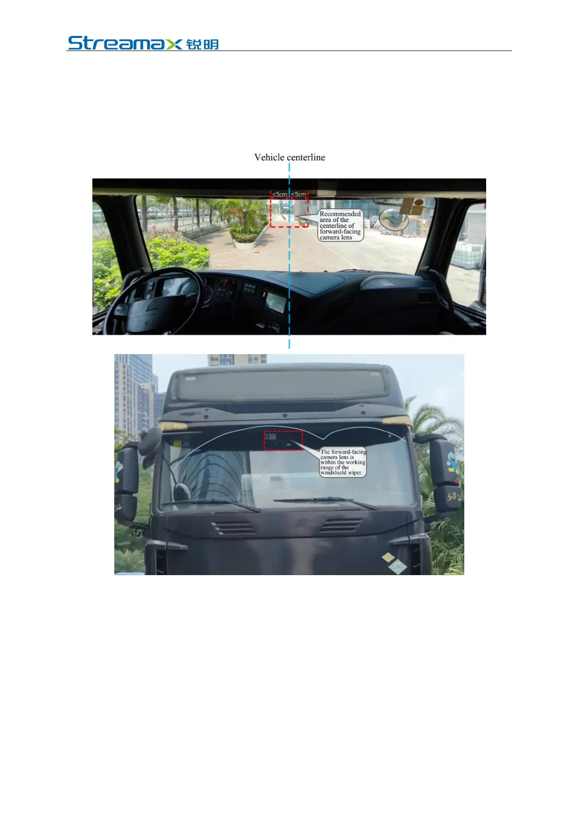 obstruction (such as interior rearview mirror or glass coating) within the field of
