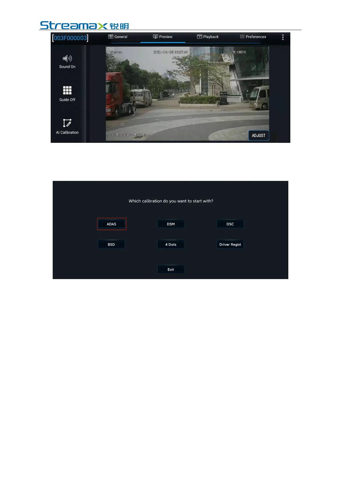 2. Select the calibration channel. ADAS cameras are all installed on Channel 1,