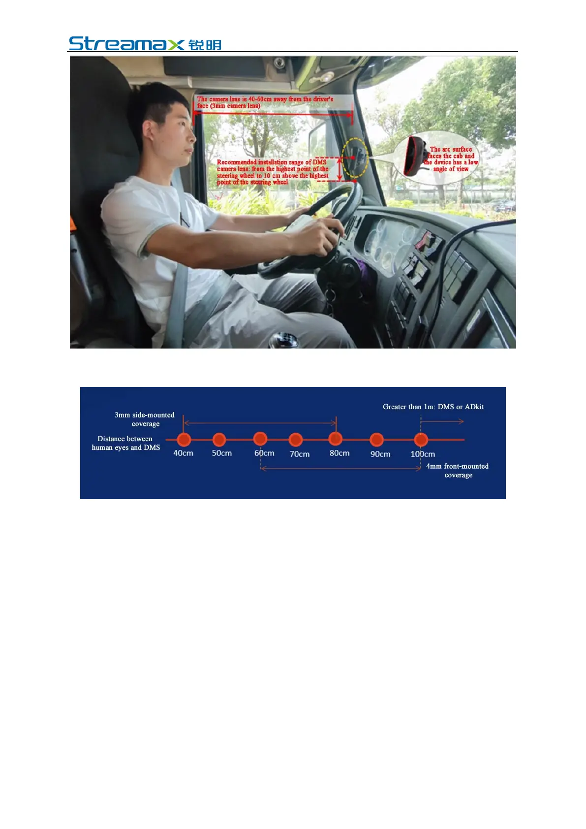 Different cameras have different "camera and driver distance" coverage, and the