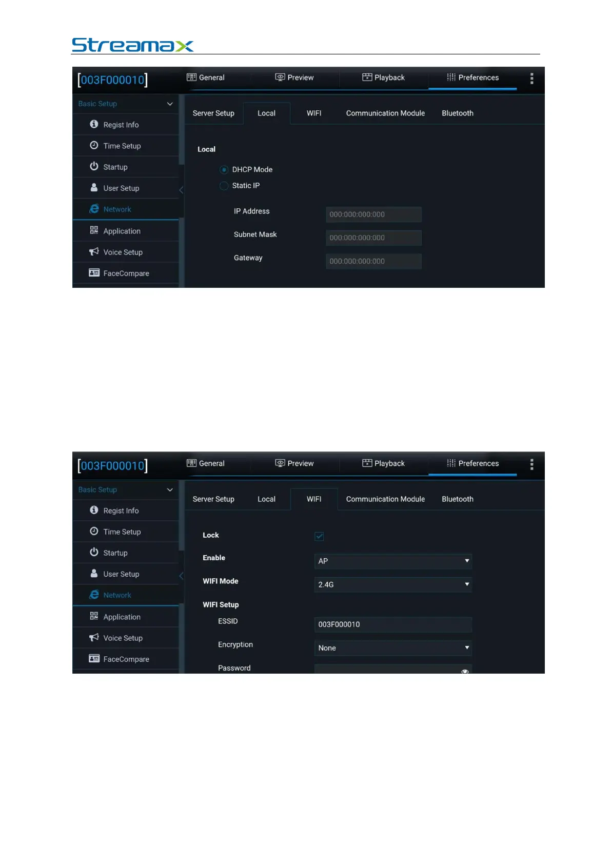 Tap Preferences > Basic Setup > Network > WIFI, as shown in the following