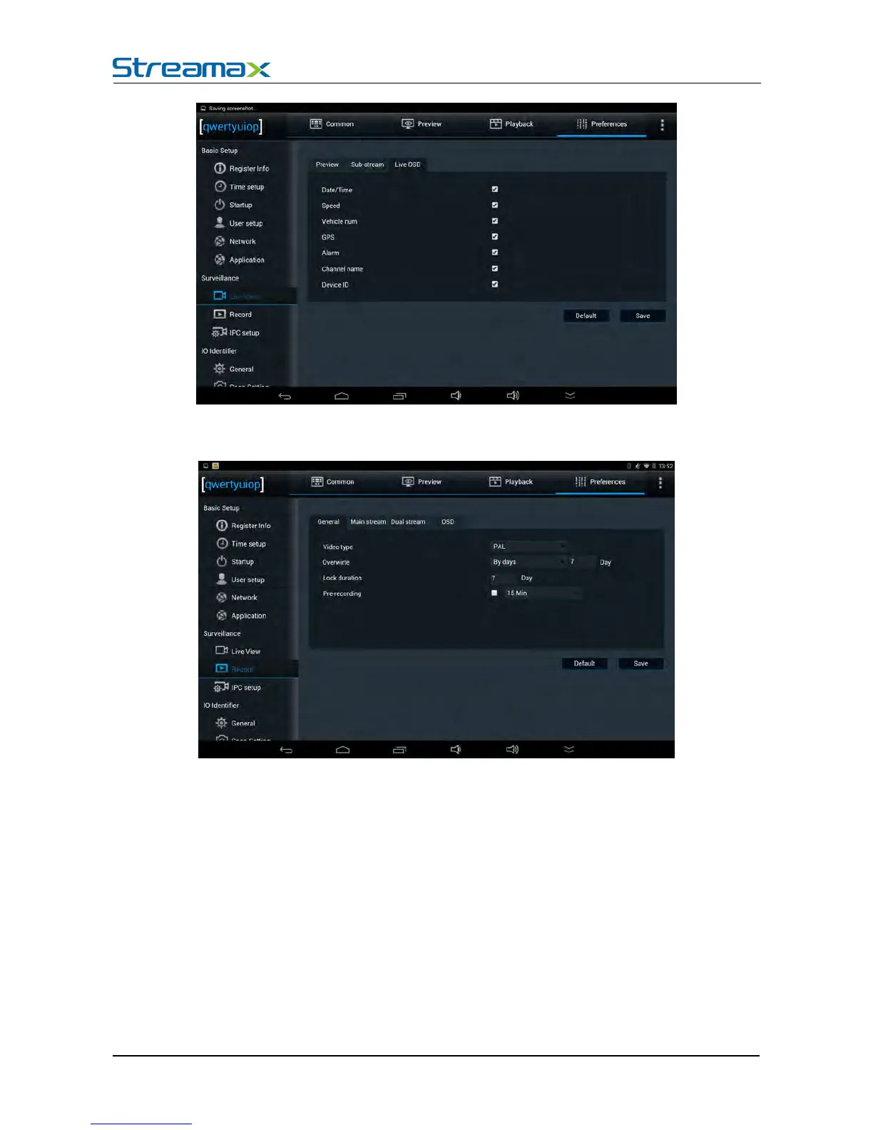 7) Record: There are General, Main Stream, Dual Stream and OSD. User can set information of video