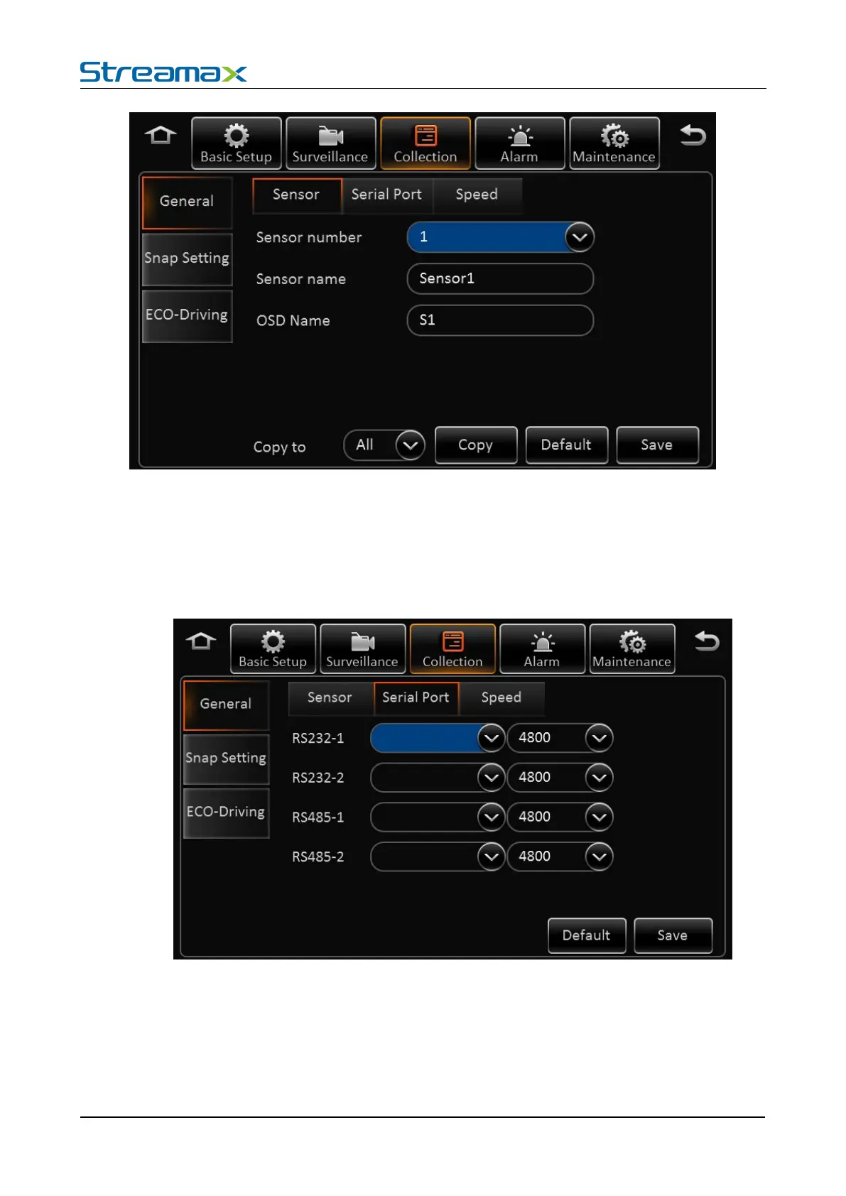 Sensor number: The total alarm input numbers of MDVR.
