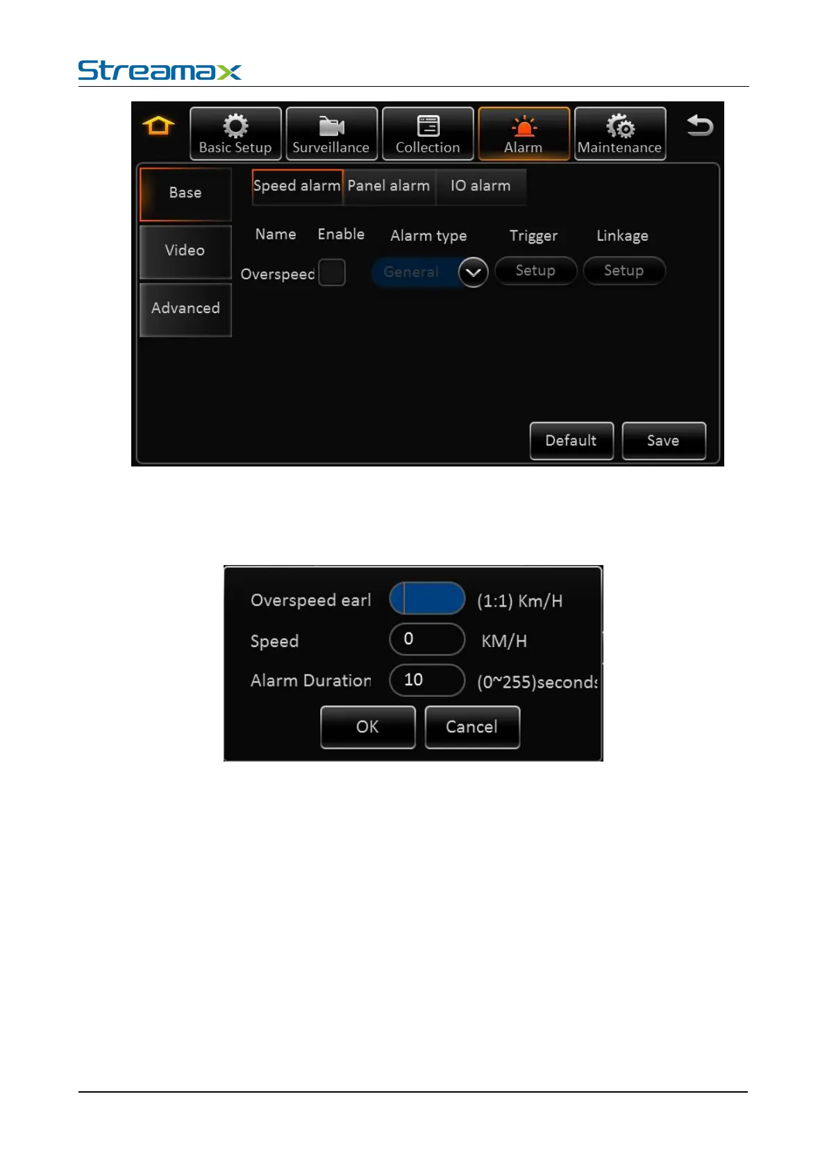 Over speed pre alarm difference: To set the pre alarm data. For example, if speed is 60 km/hour, and