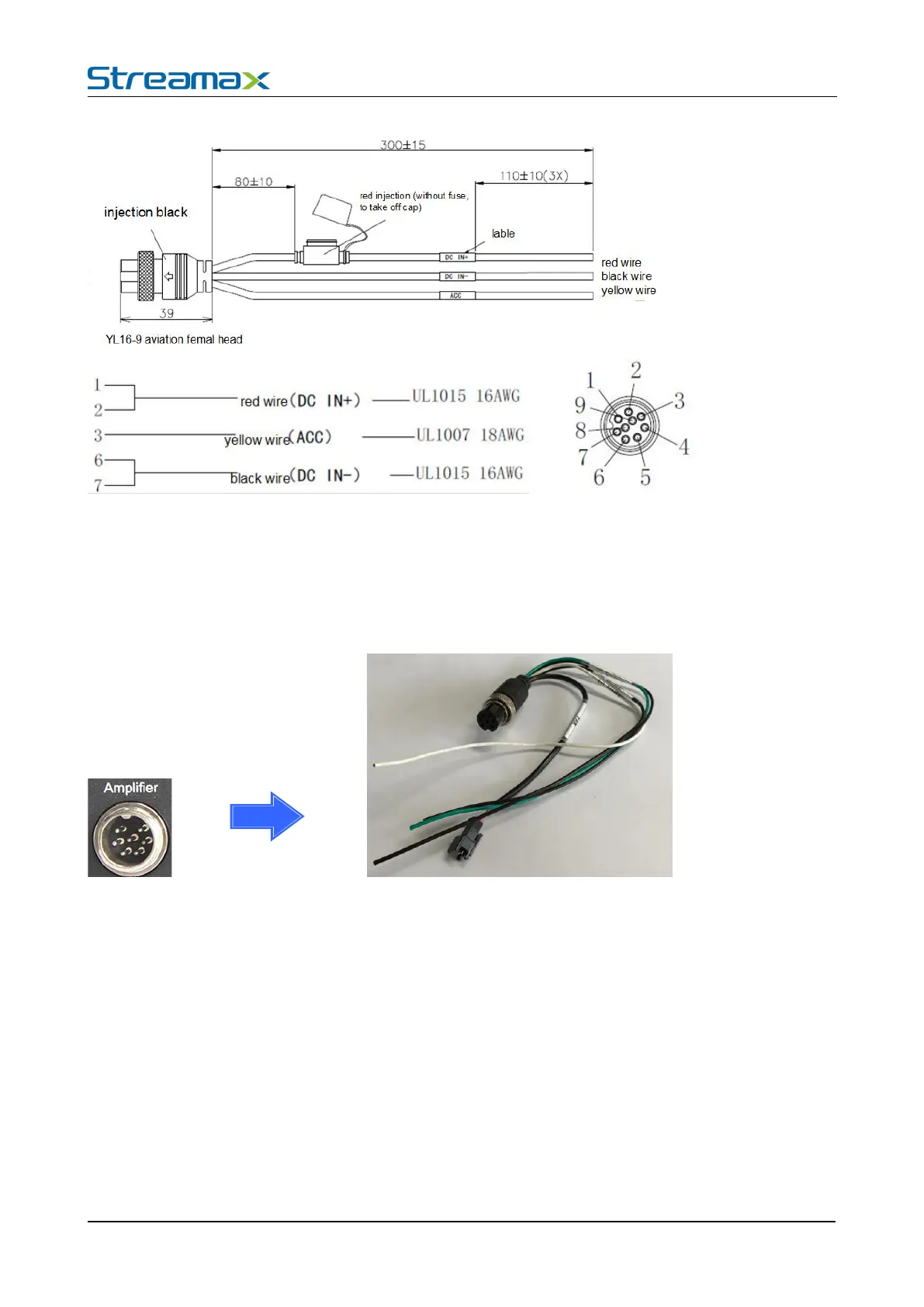 b. PIN 3 of aviation head connects with yellow wire