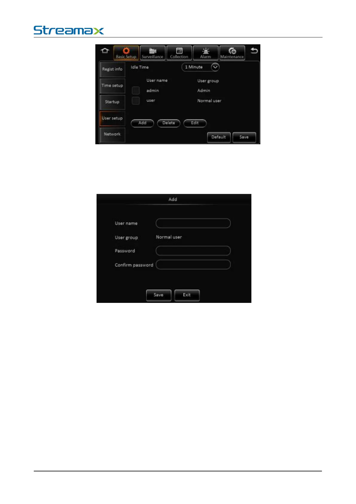 3) User name cannot be empty, not the same with the existed user name while the user password can