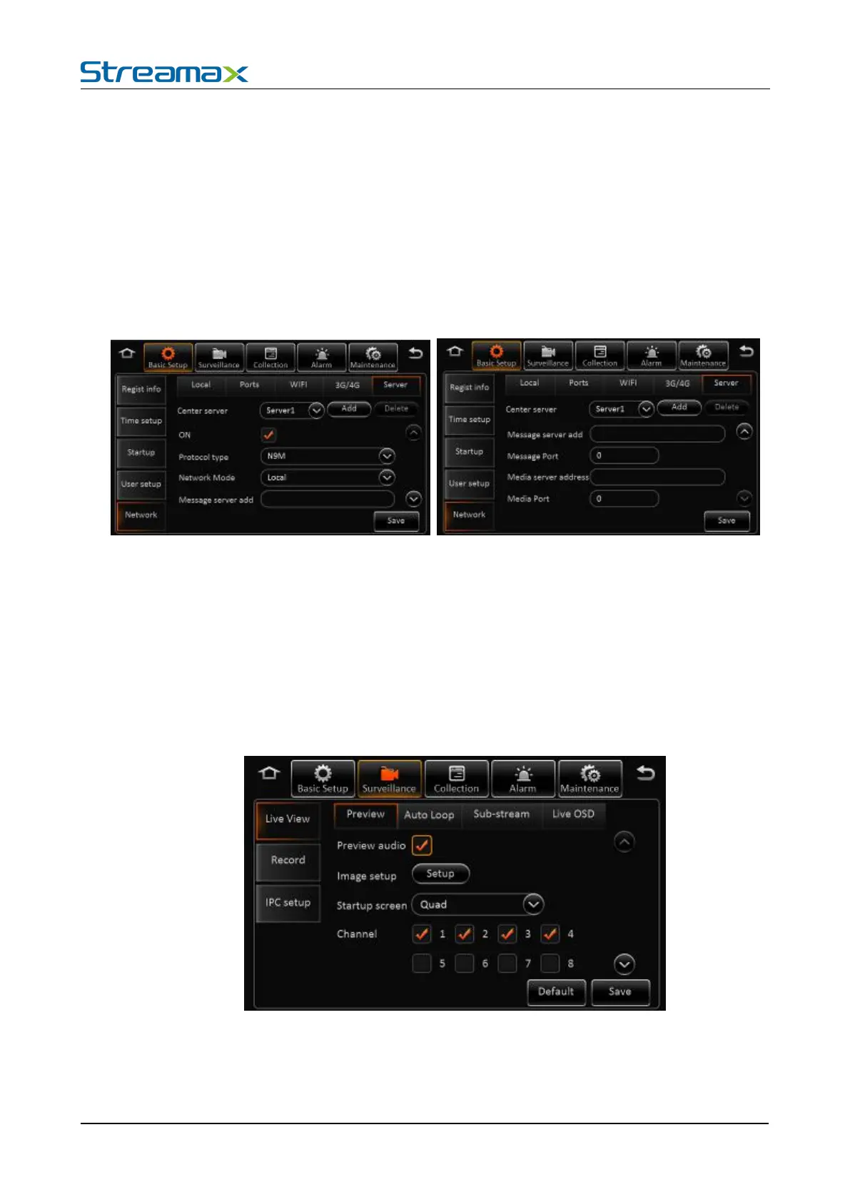 Server’s IP address and port are needed for device registering to server. Select CMS if there is