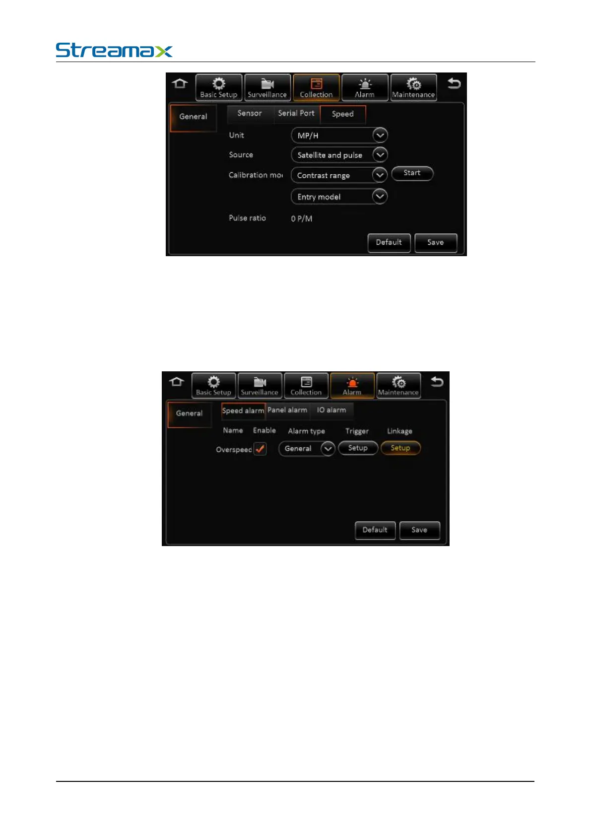 Linkage: When alarm triggered, link to alarm output, full screen live video, report to server and