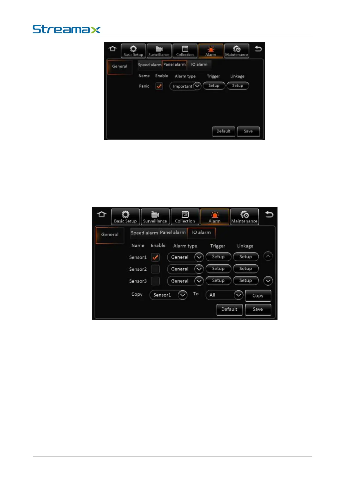 Linkage: When alarm is triggered, link to alarm output, full screen live video, report to server