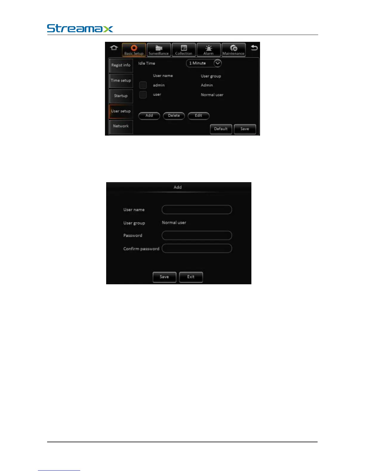 User Group: It is divided into administrator and ordinary user.