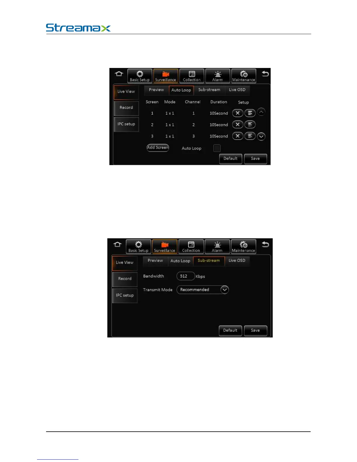 Sub-stream Setting Interface: