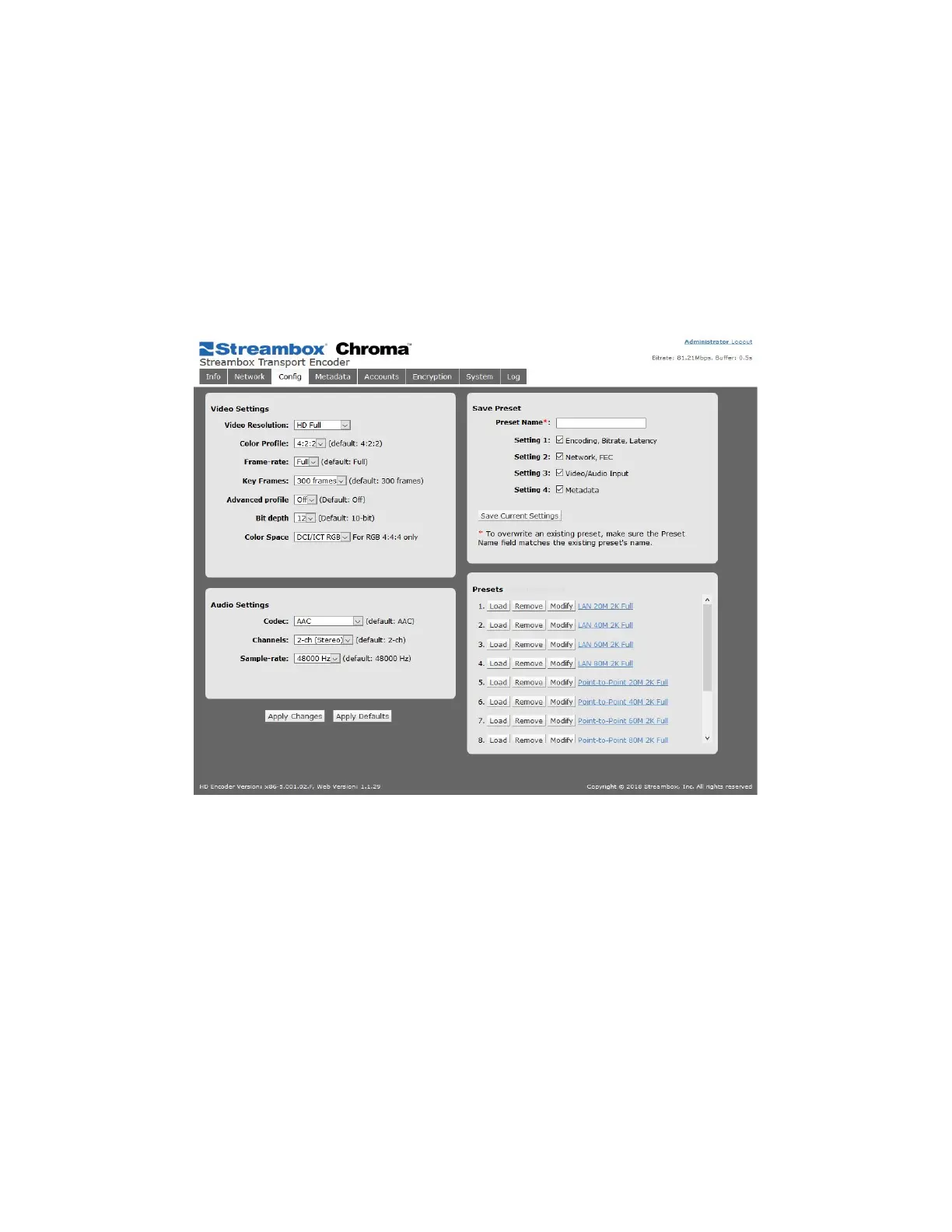 Color Profile: The video color profile specifies the detail level at which the Streambox Encoder captures color