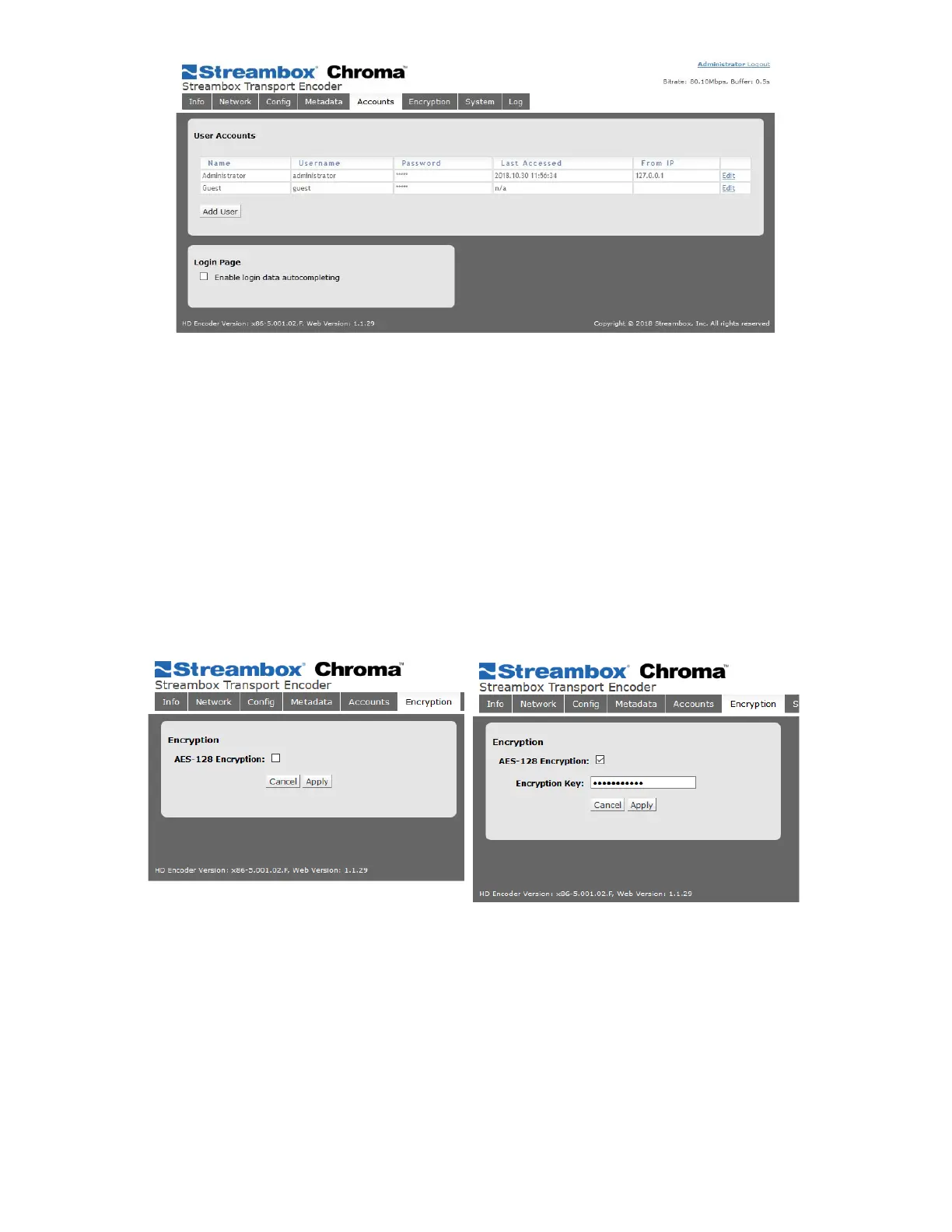 Figure 9 Encryption Page (disabled/enabled)