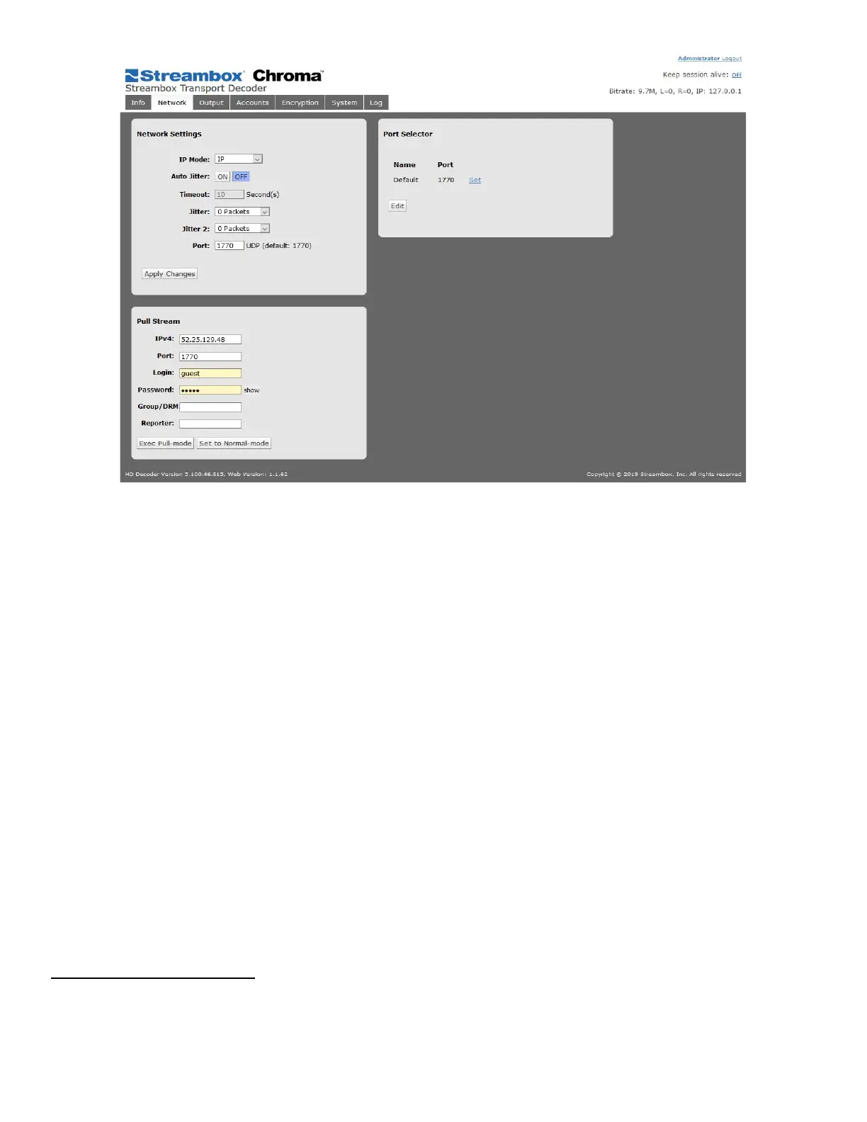 Figure 17 Decoder Web UI Network Page