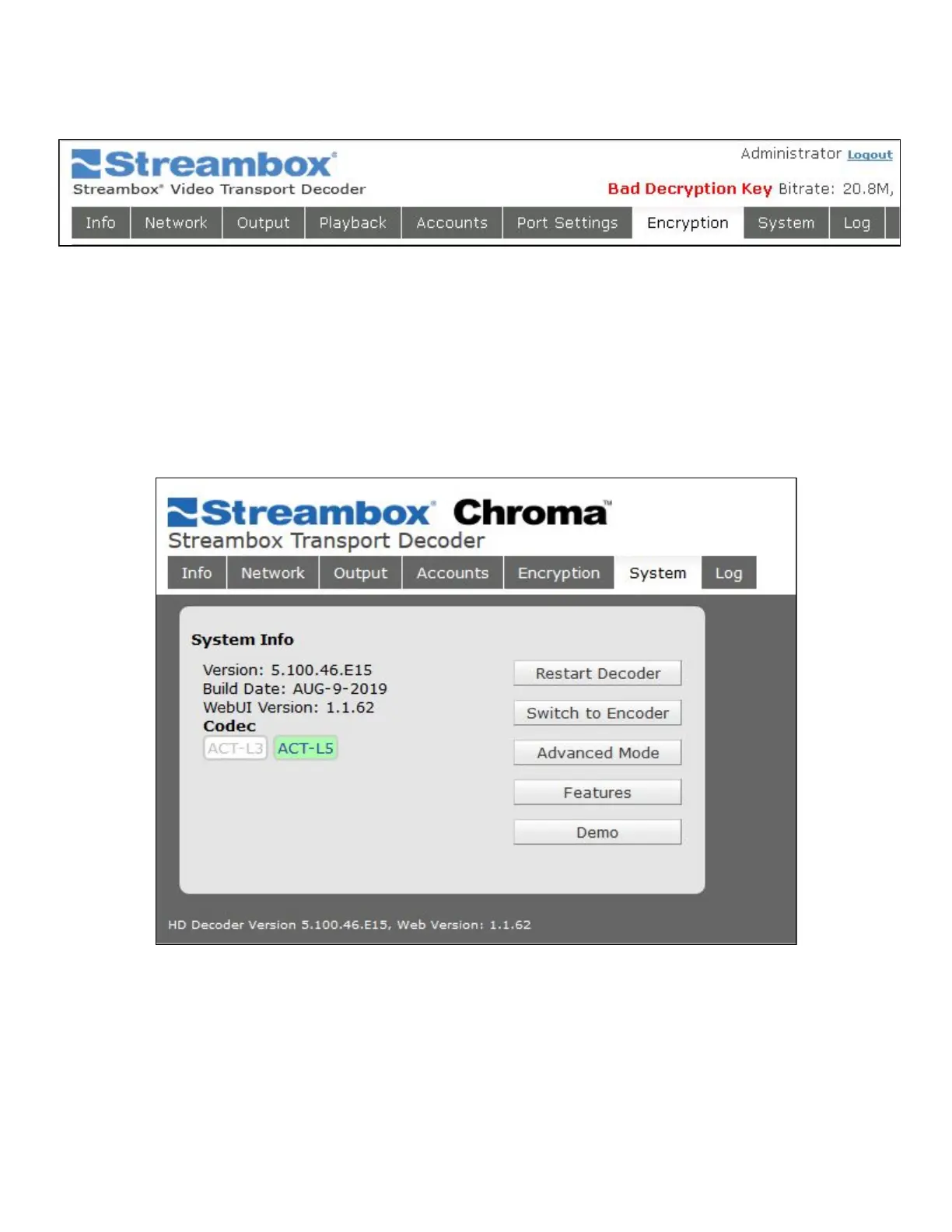 Figure 23 Decoder Web UI System Page