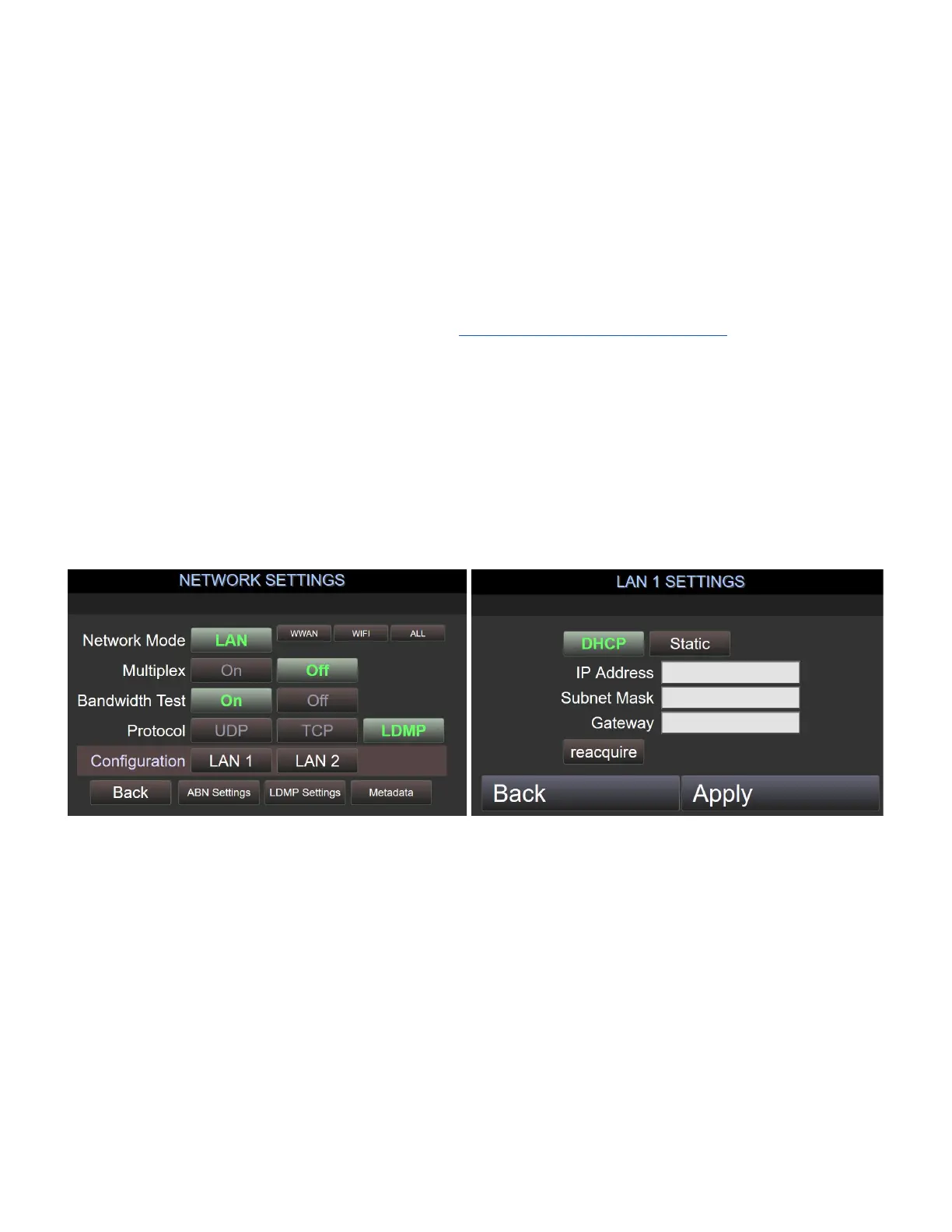Navigate to the Network Settings by selecting the Network button on the Home page -> LAN1 [or LAN2] or