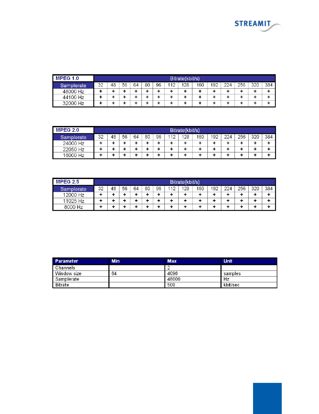 The table below shows the maximum bitrates allowed for two channels for a specific samplerate as
